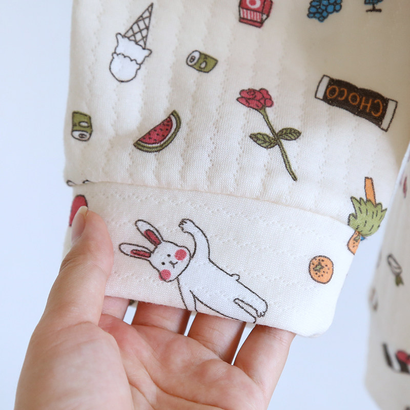 纯棉空气层女士睡衣长袖单上衣秋冬加厚保暖三层夹棉家居服卡通