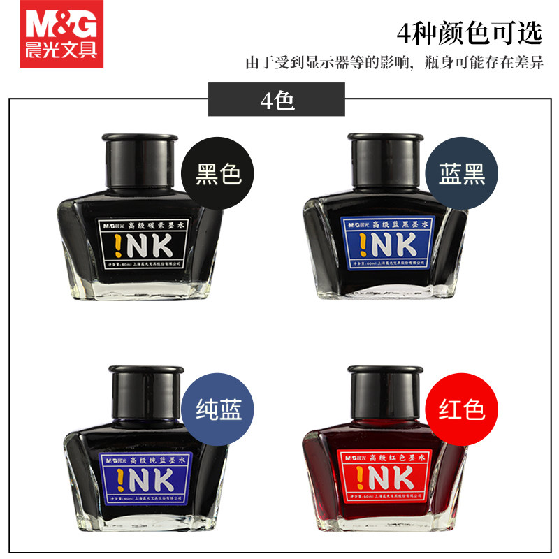 晨光学生钢笔墨水碳素墨水黑色红色蓝色书写墨水60ML包邮AICW9001