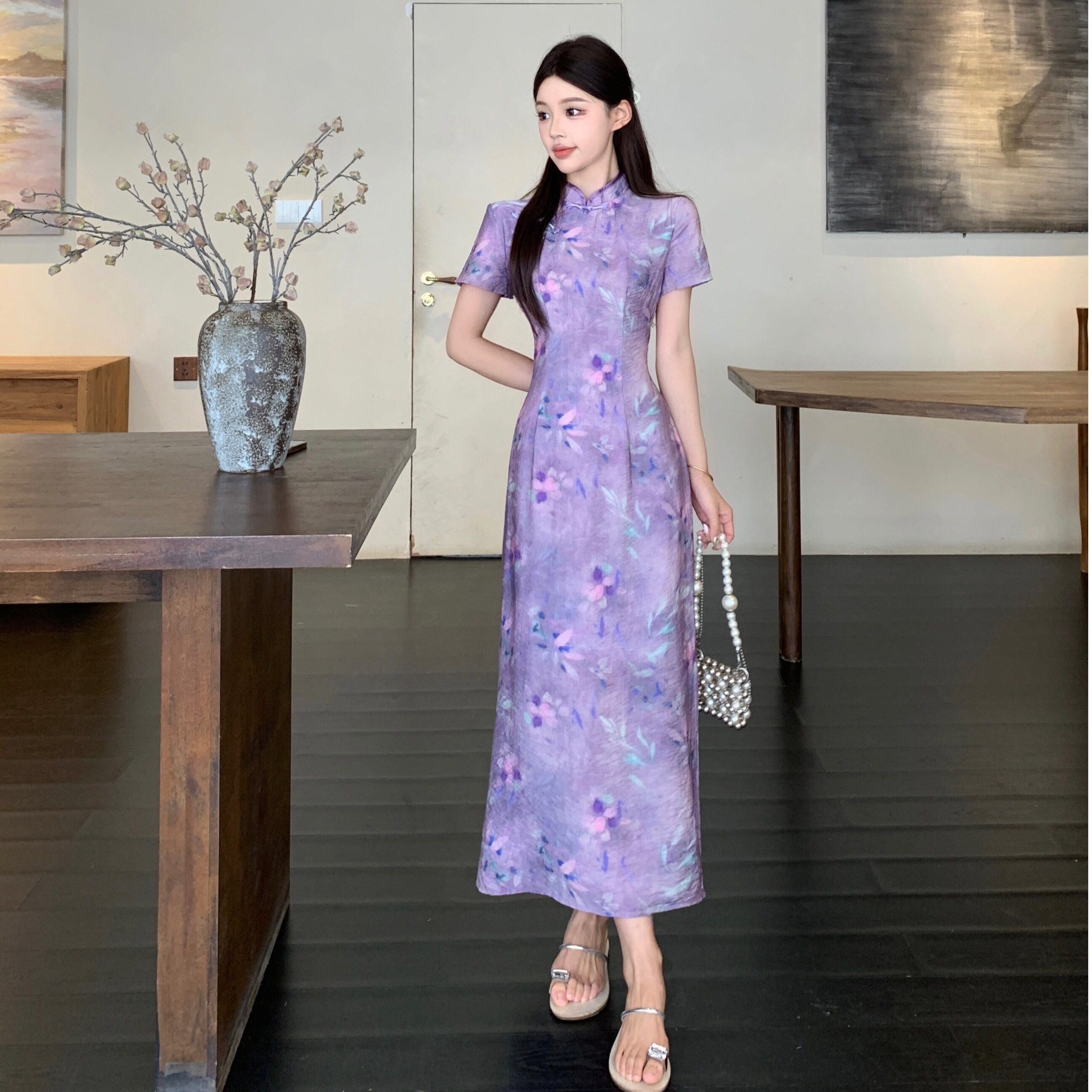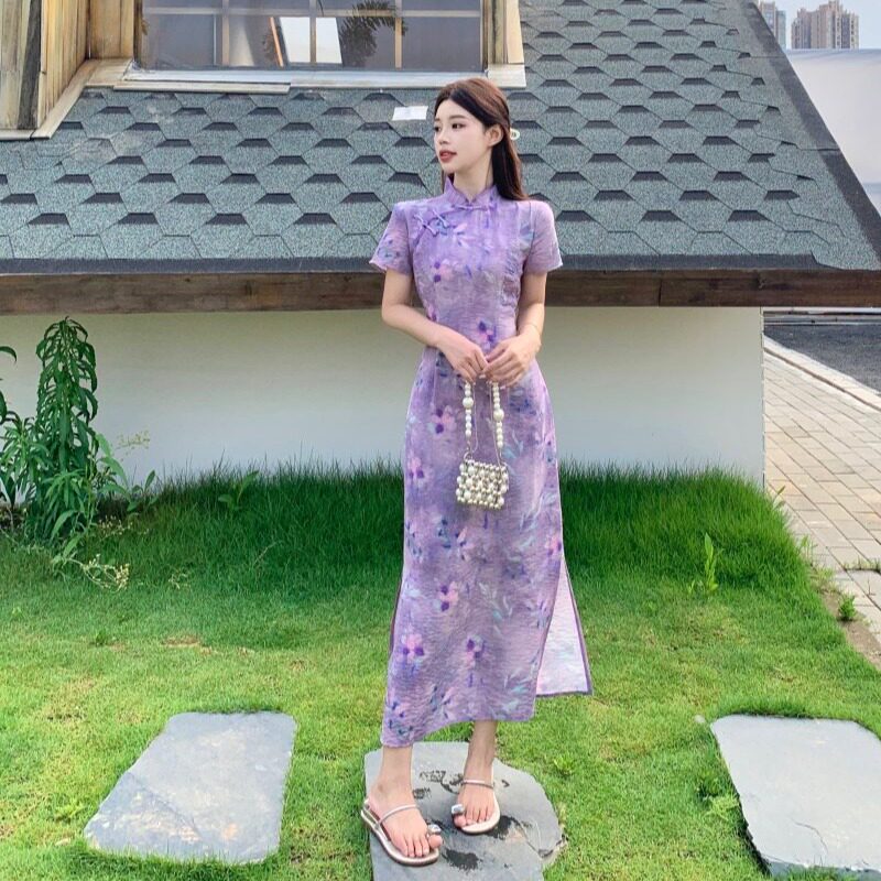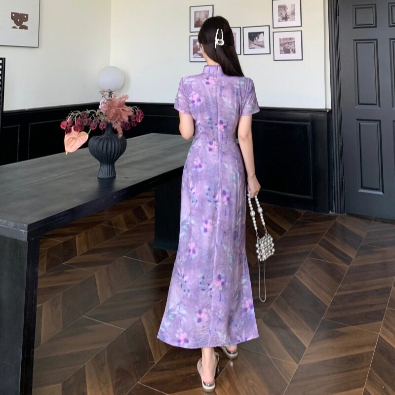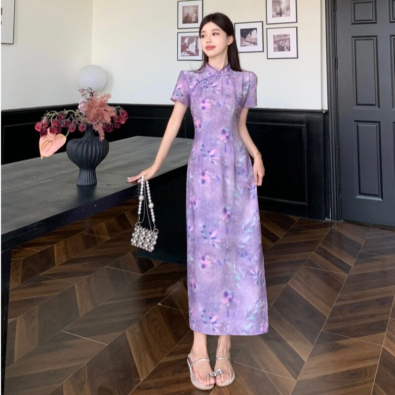 大码新中式国风年轻款旗袍连衣裙女夏胖mm气质收腰显瘦绝美长裙子