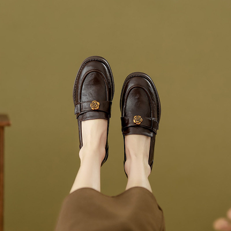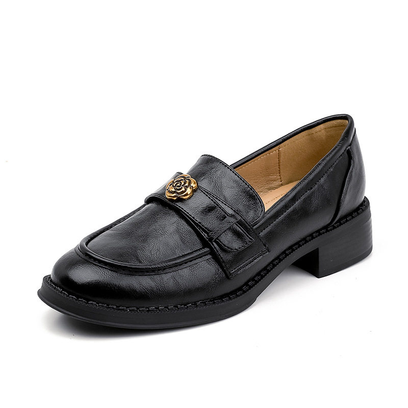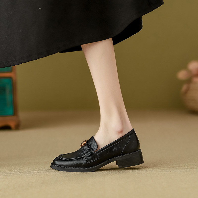 真皮小皮鞋女2026新款春季英伦厚底百搭增高黑色乐福鞋一脚蹬单鞋