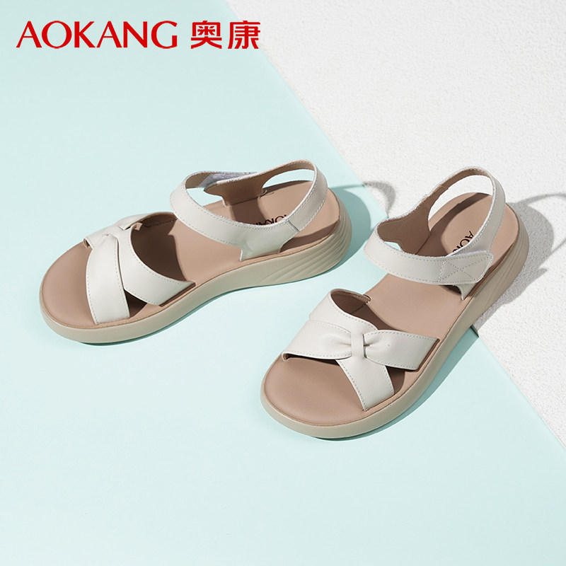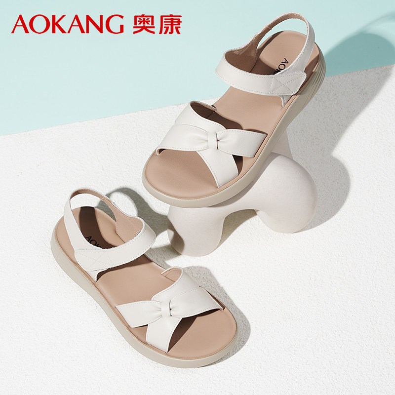 奥康女鞋2025年夏季新款真皮软底平底外穿不累脚凉鞋女夏轻便防滑
