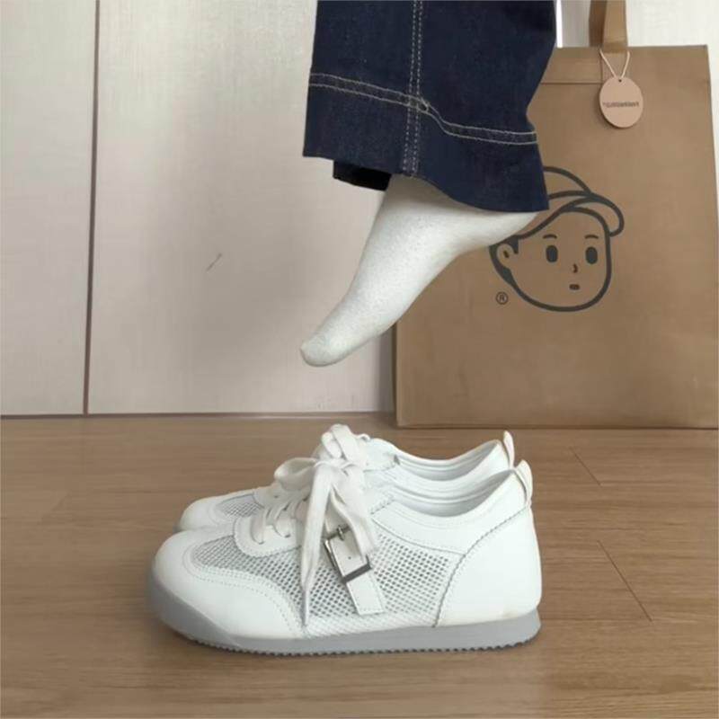 时尚皮带扣厚底运动鞋女款2026夏季新款系带休闲鞋增高鞋厚底球鞋