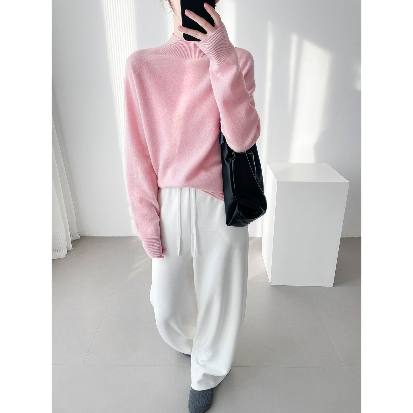 粉色半高领毛衣女款2026新款慵懒感高级内搭可外穿羊毛羊绒打底衫
