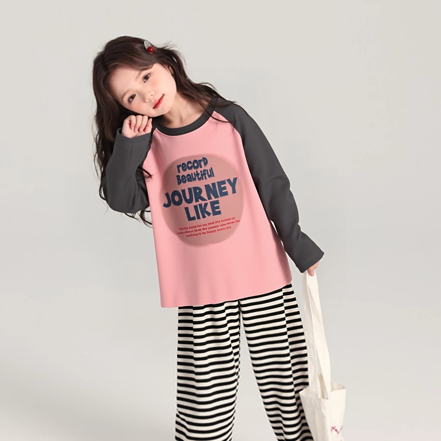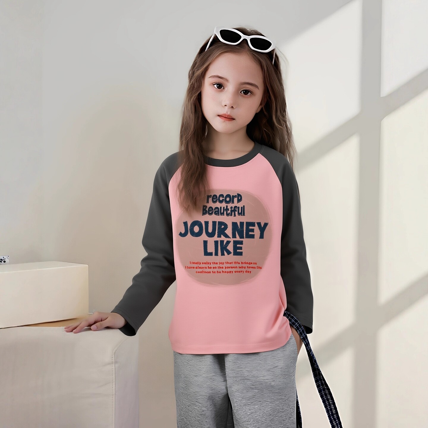 品牌童装中大童女孩亲子款春季洋气学生长袖T恤 青少年打底衫纯棉