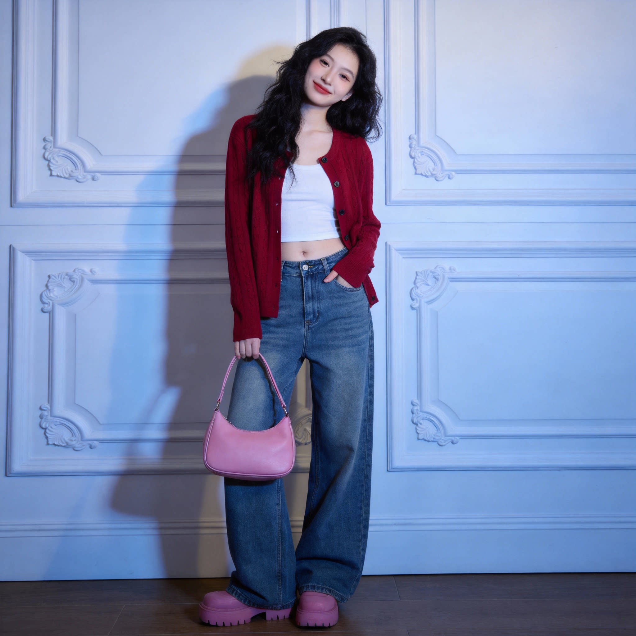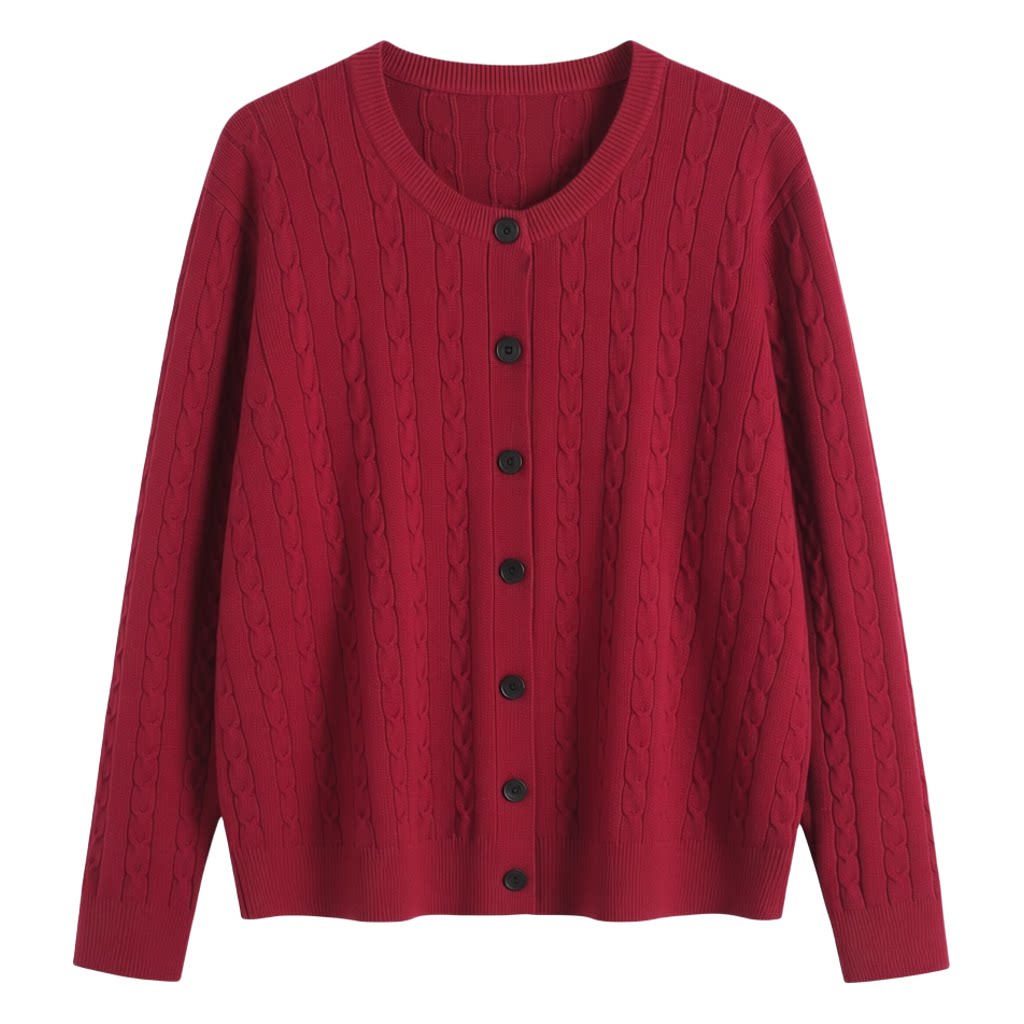 红色针织开衫女2026新款优雅风圆领纽扣毛衣通勤显瘦多色百搭上衣