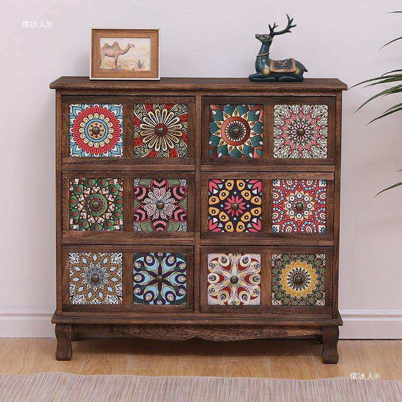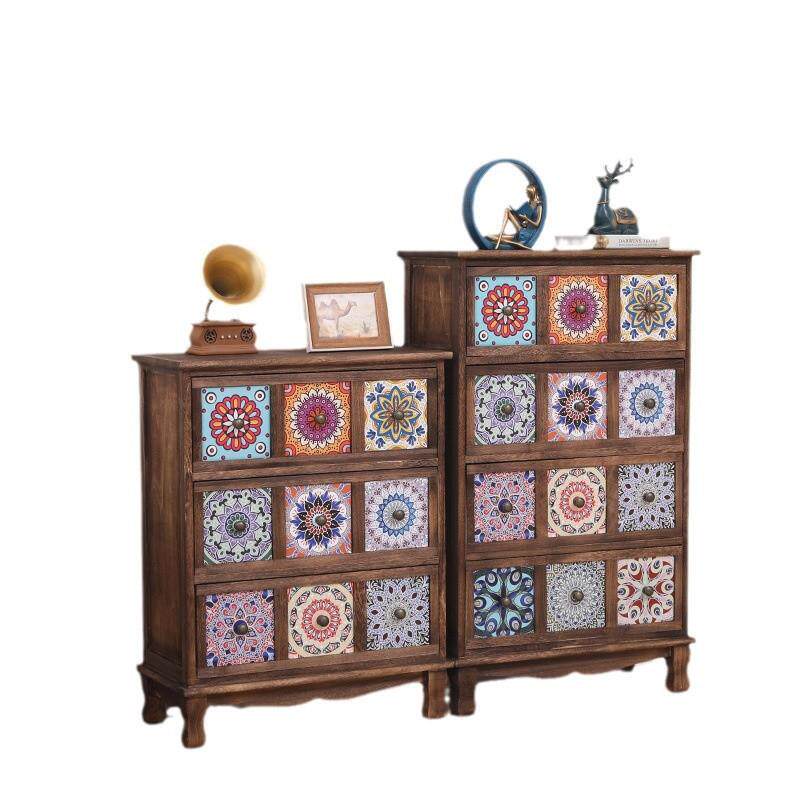 美式实木复古储物柜抽屉式收纳柜客厅多层置物柜卧室斗柜阳台柜子
