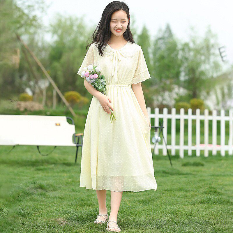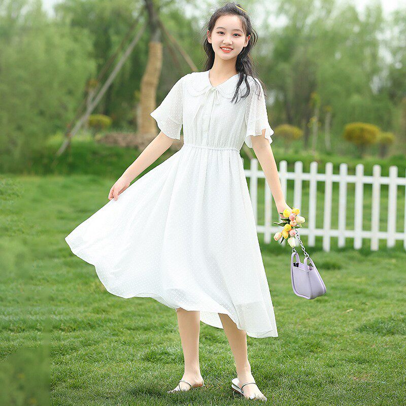 新22267森系连衣裙仙气雪纺长款过膝初中学生夏装长裙子高中
