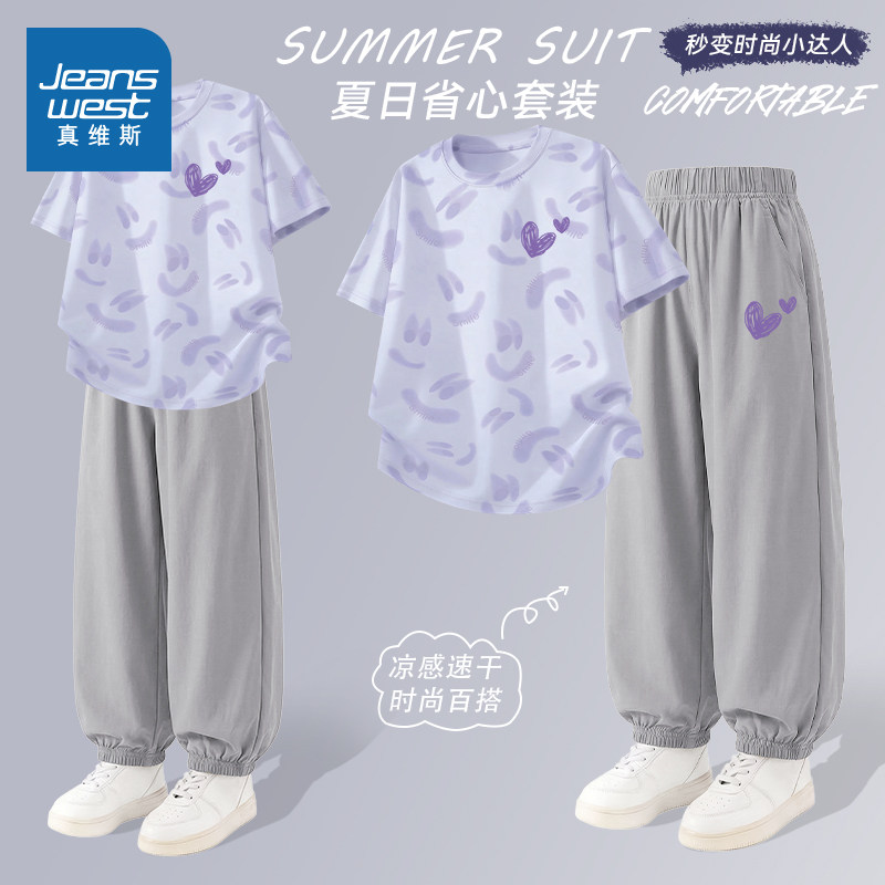 真维斯童装女童套装夏季2026新款夏装女孩速干运动服儿童防晒衣服