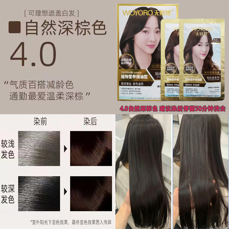无忧然植物染发剂染发膏袋包黑色栗棕色盖白发泡泡染发霜官方正品