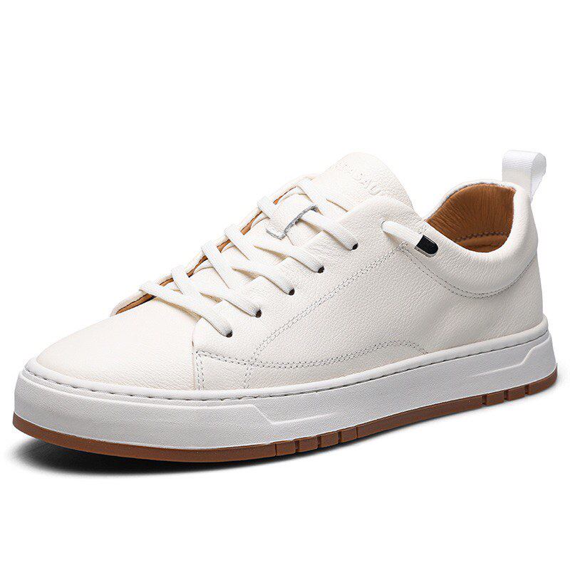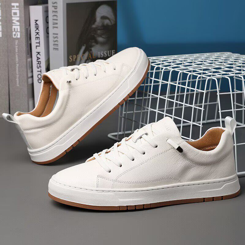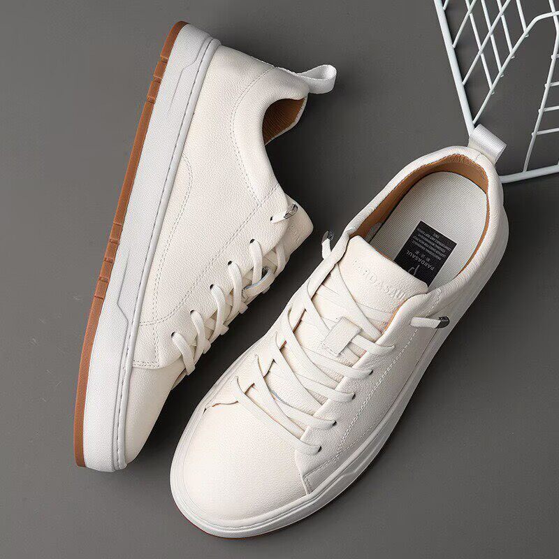 头层牛皮小白鞋男款商务休闲鞋高级感白色板鞋夏季透气不闷脚男鞋