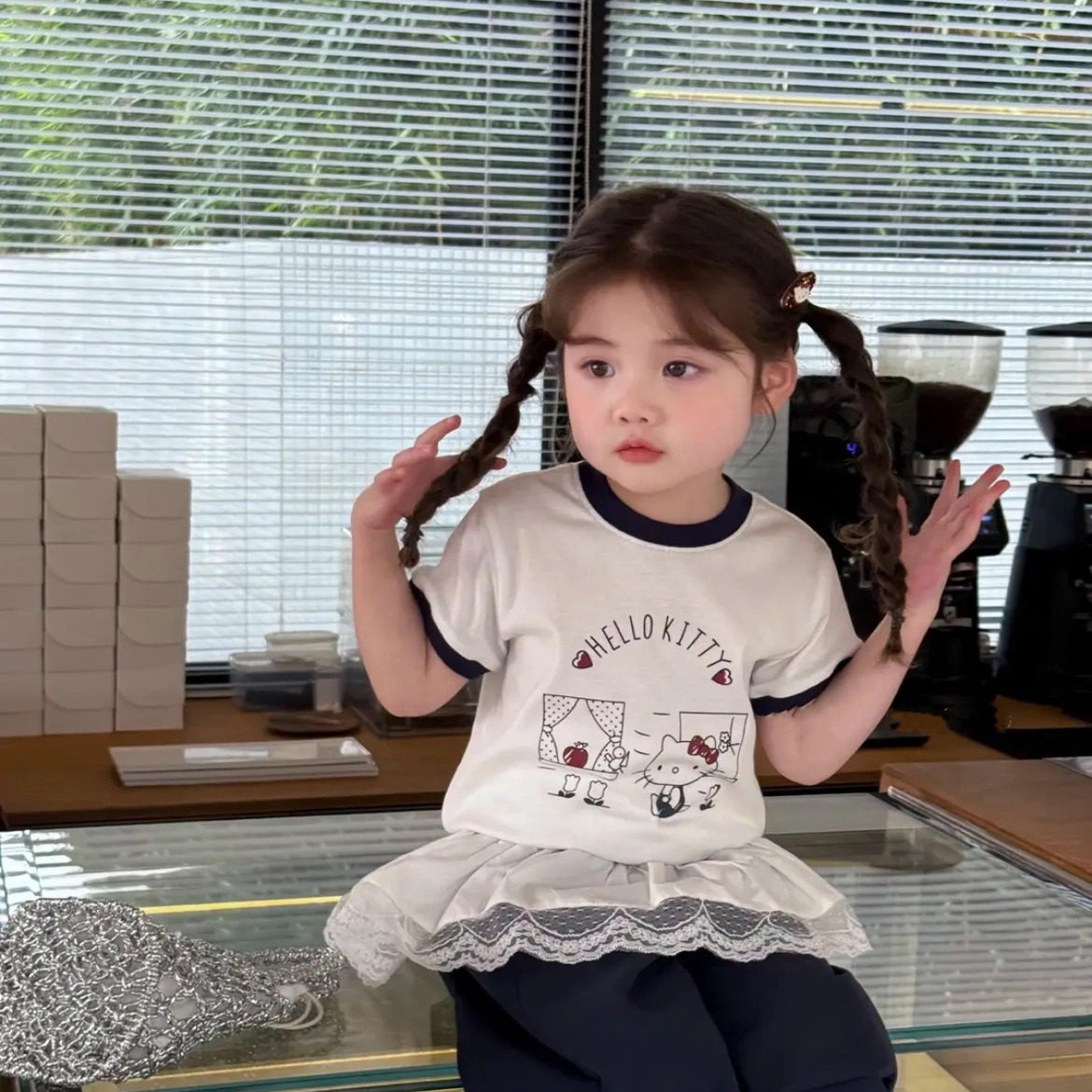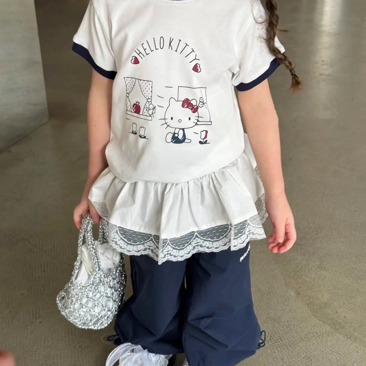 韩国女童森系港风复古套装2025春夏装新款卡通短袖个性屁帘运动裤