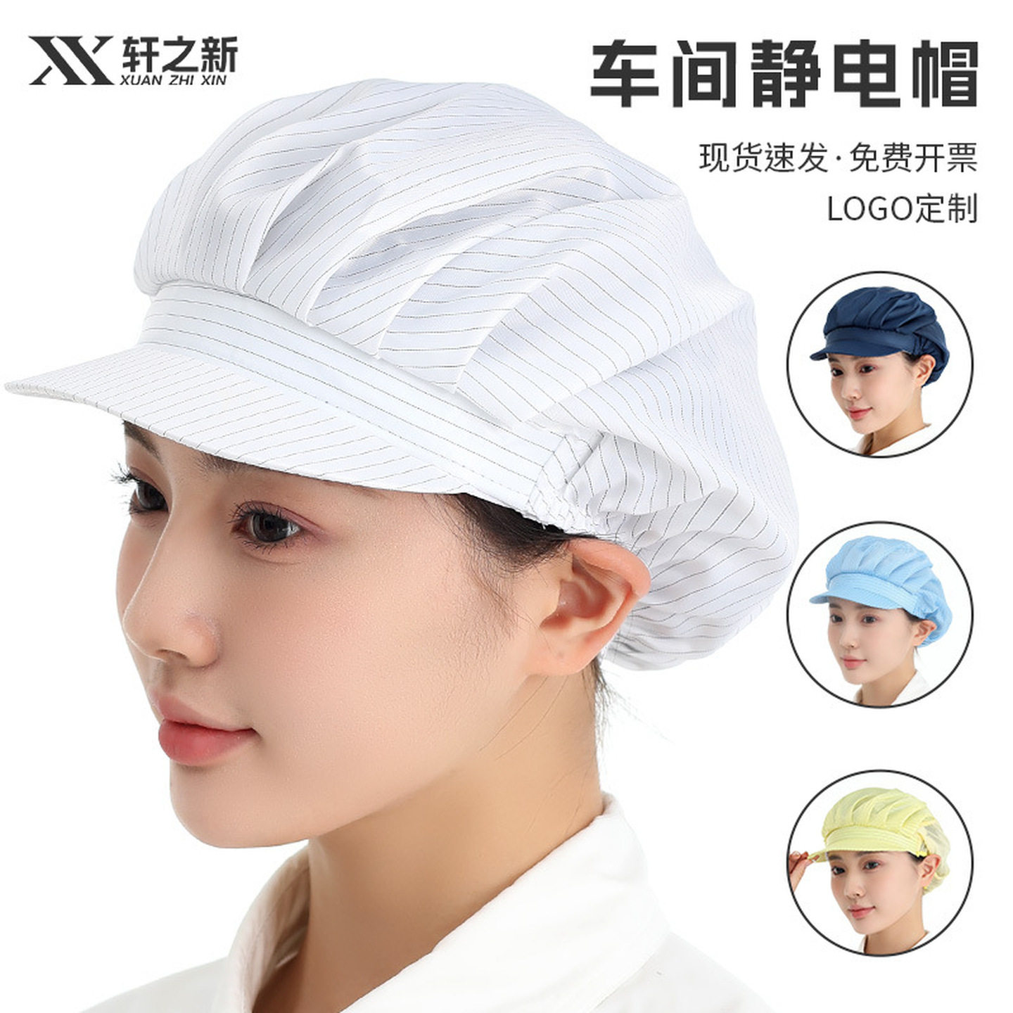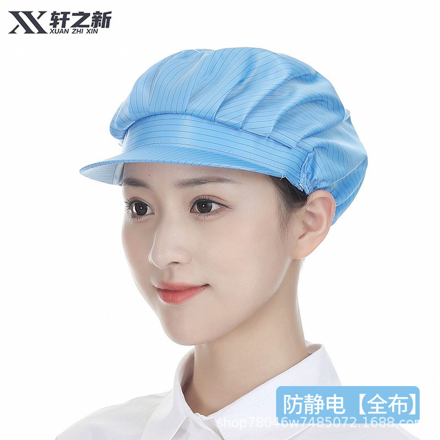 防尘防静电帽子硬帽檐男女士无尘室车间白蓝粉黄灰色披肩帽工作帽