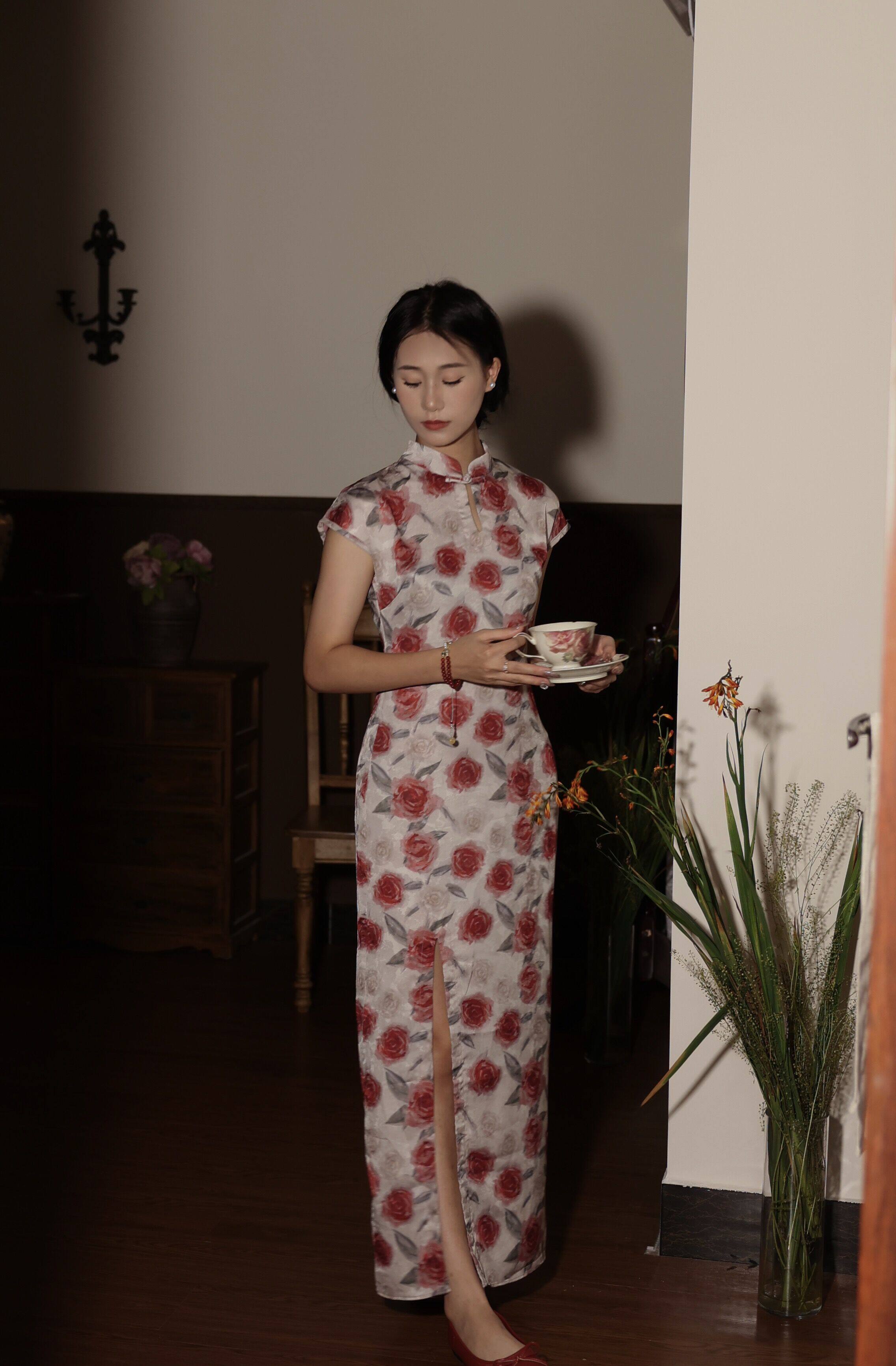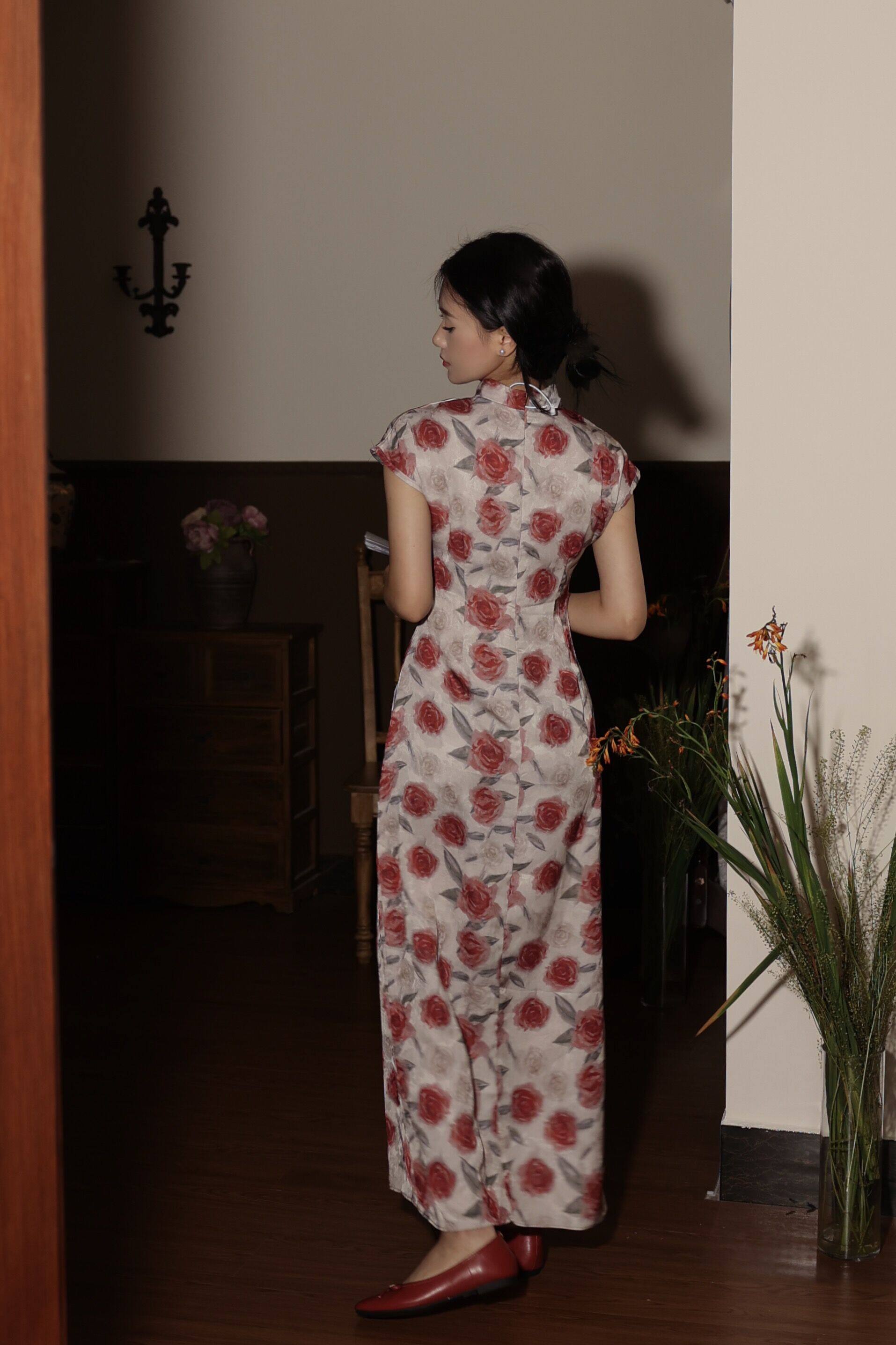 喵吉新中式国风修身收腰日常改良旗袍裙小个子长款碎花连衣裙女夏