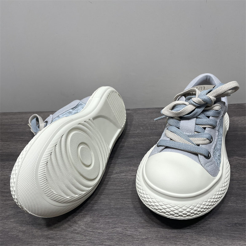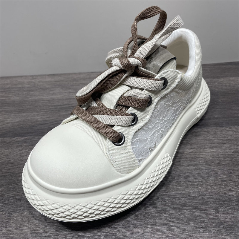 断码处理夏季蕾丝网面休闲鞋厚底透气大头丑萌鞋系带帆布面包鞋女