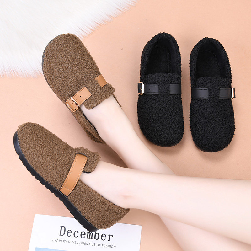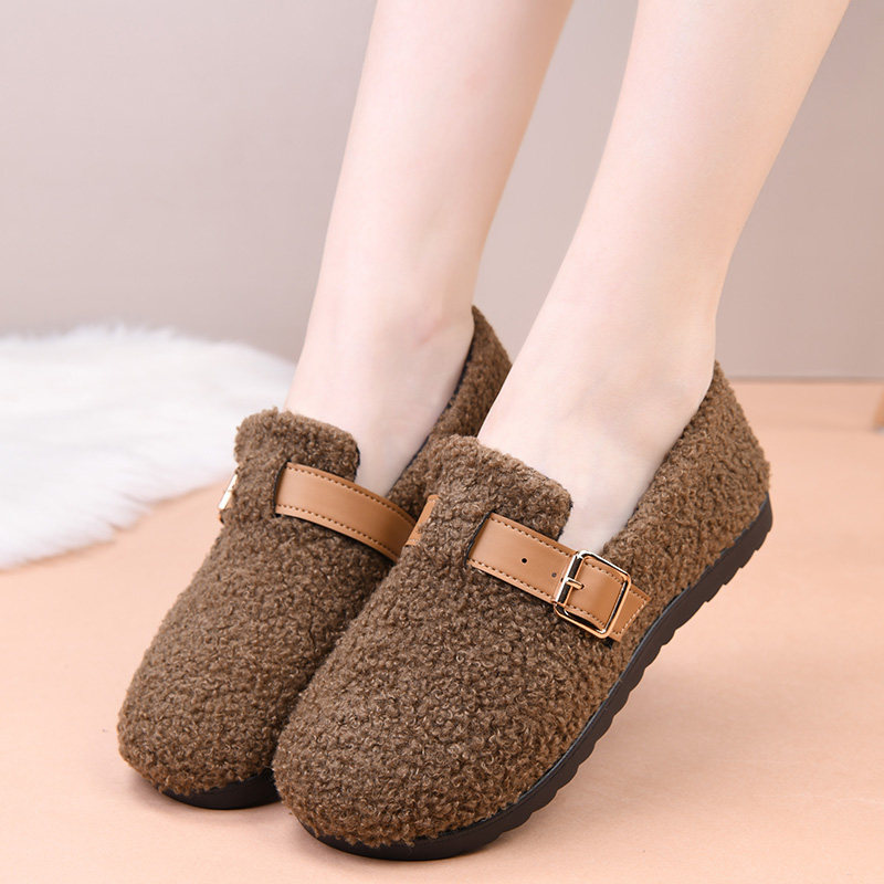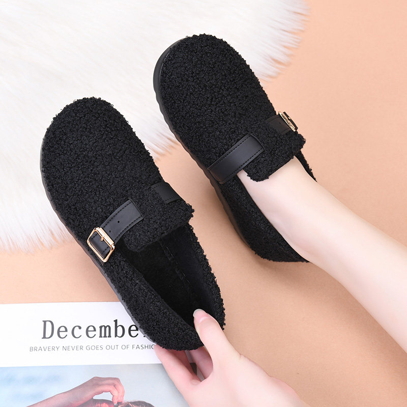 2025新款冬季加绒老北京布鞋保暖女款棉鞋平底防滑一脚蹬妈妈棉鞋