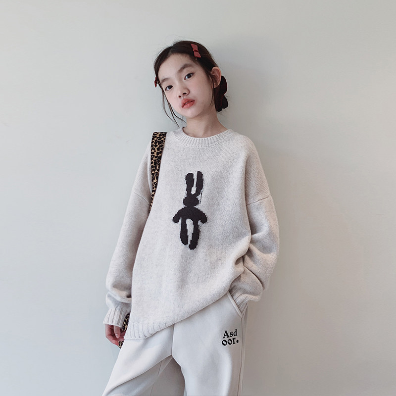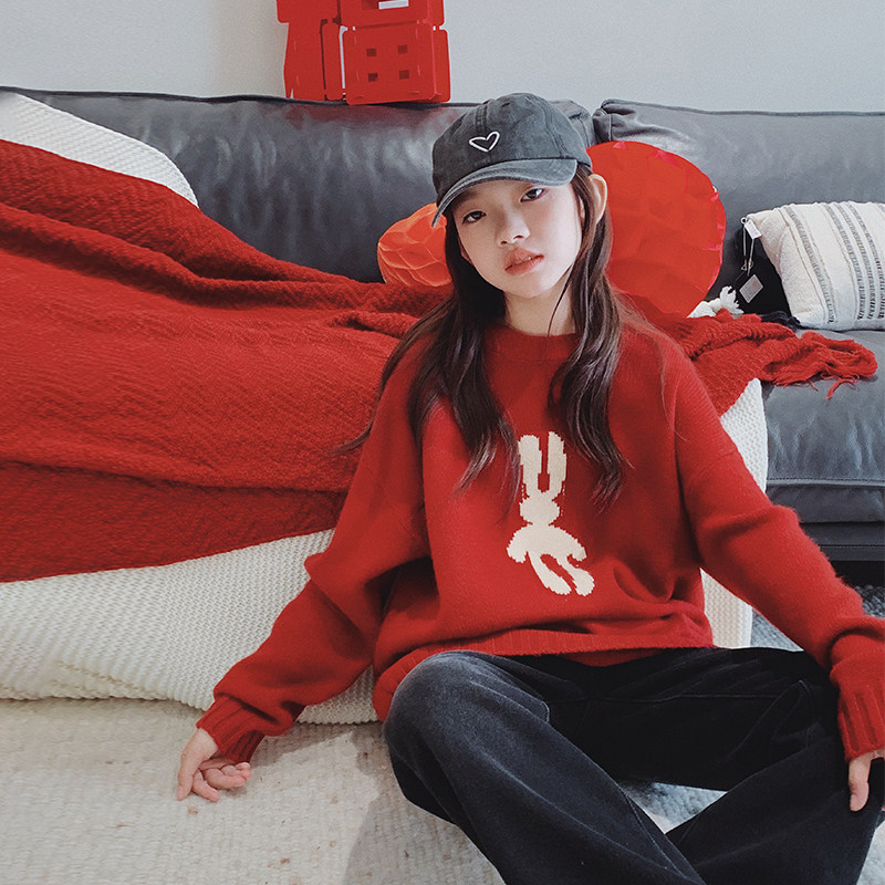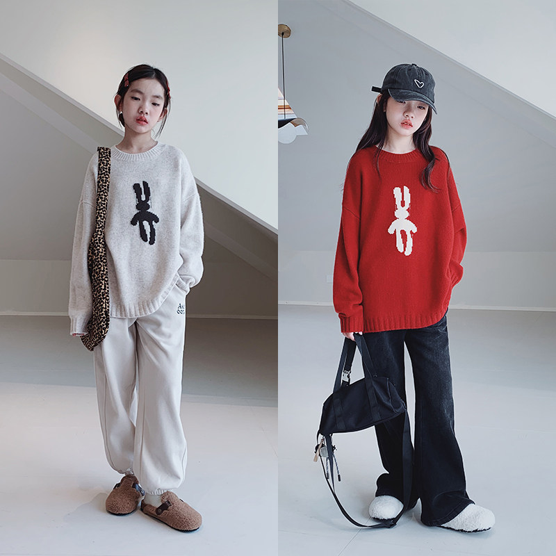 女童毛衣2024冬装新款女大童初中生羊毛套头上衣儿童休闲针织衫潮