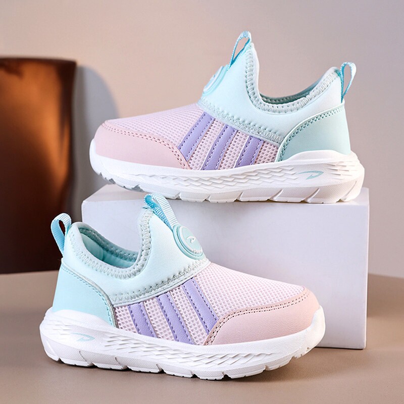 女童鞋子春秋透气网面一脚蹬女孩布鞋软底儿童跑步鞋幼儿园室内鞋