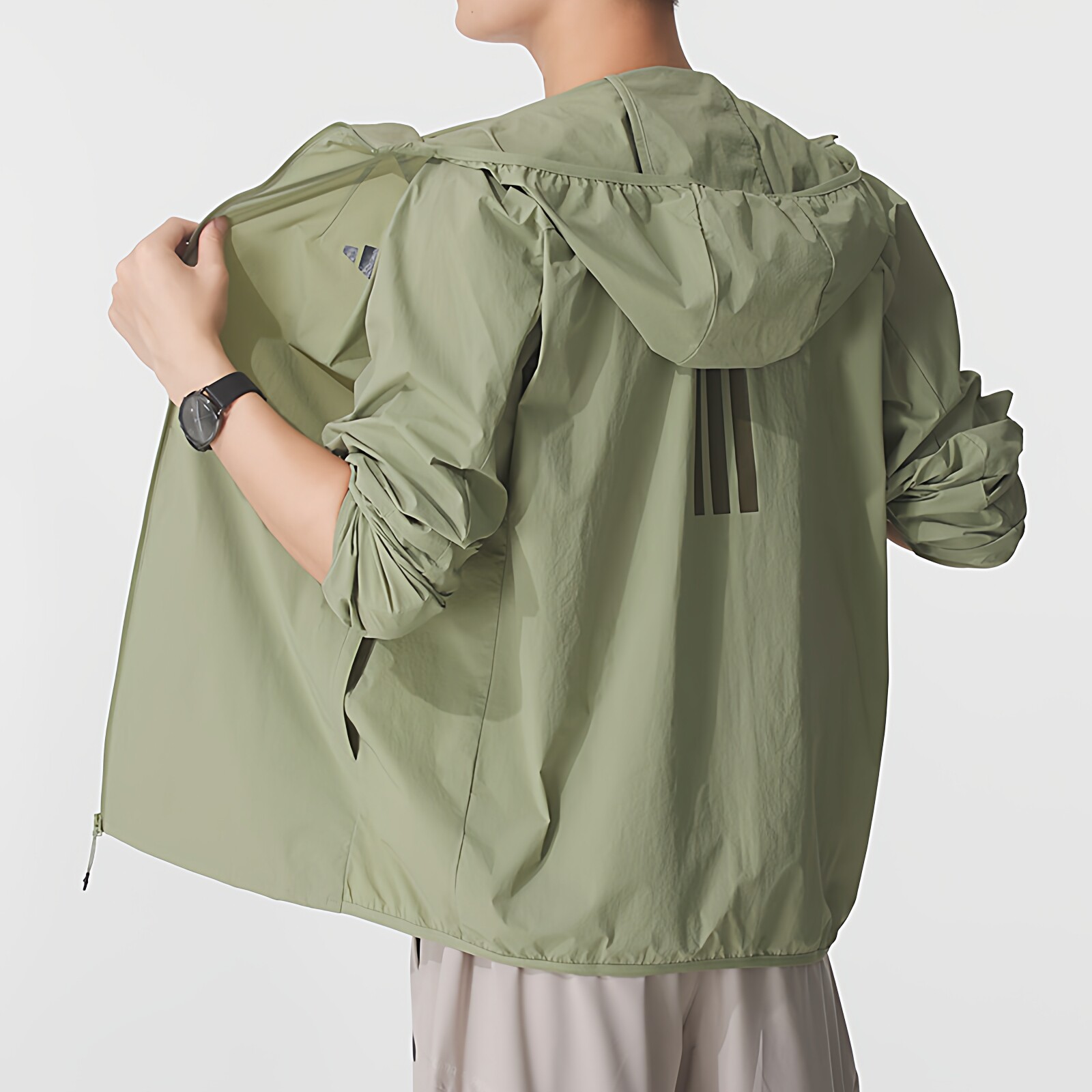 阿迪达斯绿色防风衣男春季新款透气连帽梭织复古薄款外套男KB5158