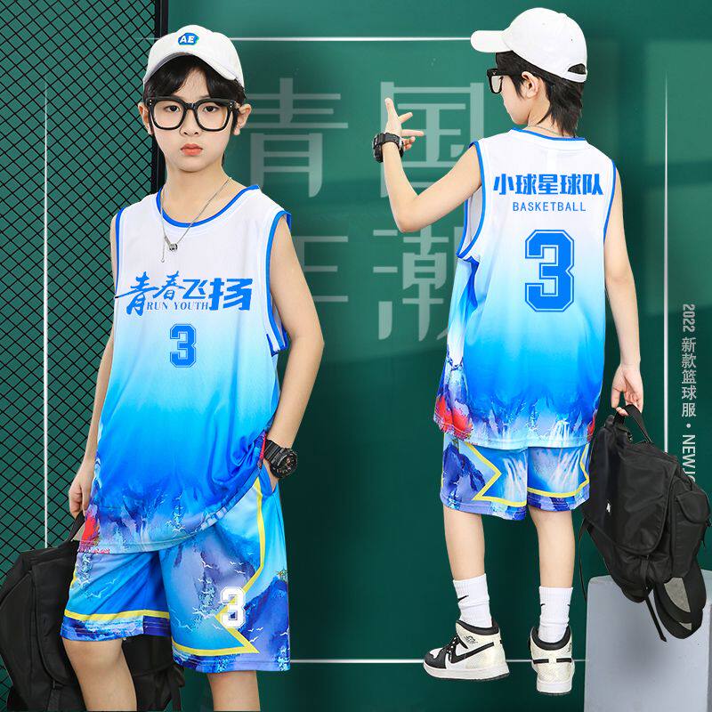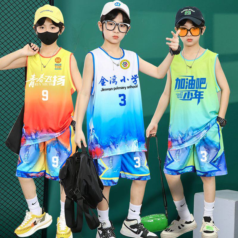 儿童篮球服套装男童2023新款训练服小学生比赛球衣定制夏背心队服