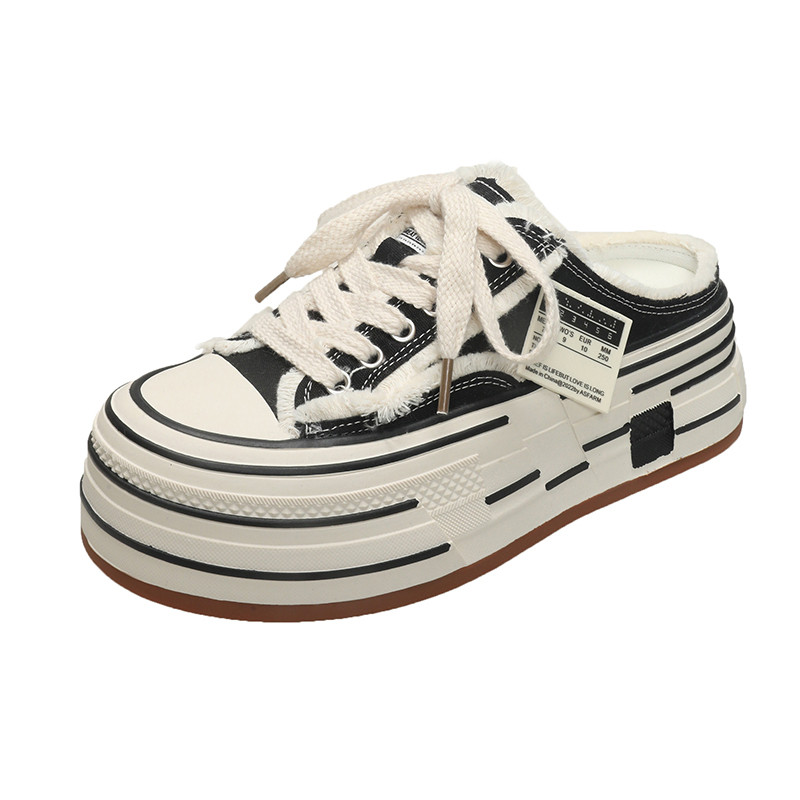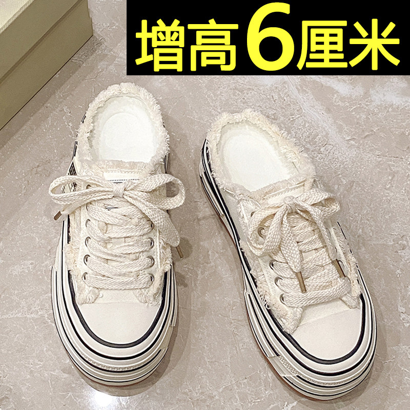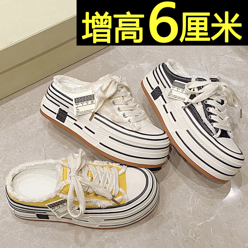 厚底帆布鞋女2026新款夏季内增高休闲板鞋一脚蹬小白鞋包头半拖鞋