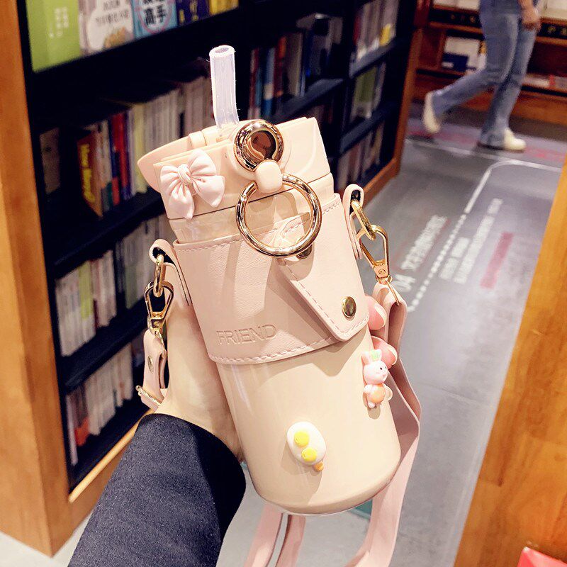 简约成人保温杯女士高颜值精致水杯斜挎便携小巧 316不锈钢吸管杯