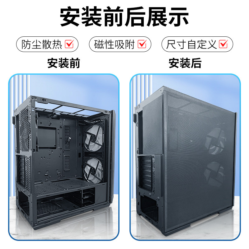 台式机箱PVC防尘网海景房侧板定制隔尘网电脑主机顶部磁吸过滤网
