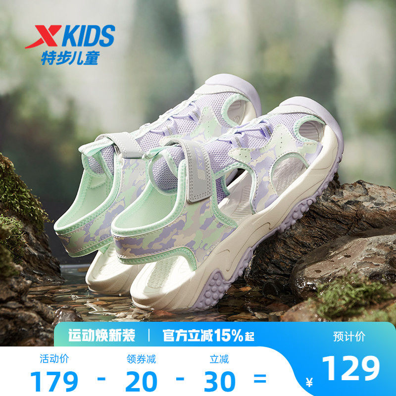 特步童鞋2026夏季新款女童包头凉鞋防滑儿童沙滩鞋中大童运动鞋子