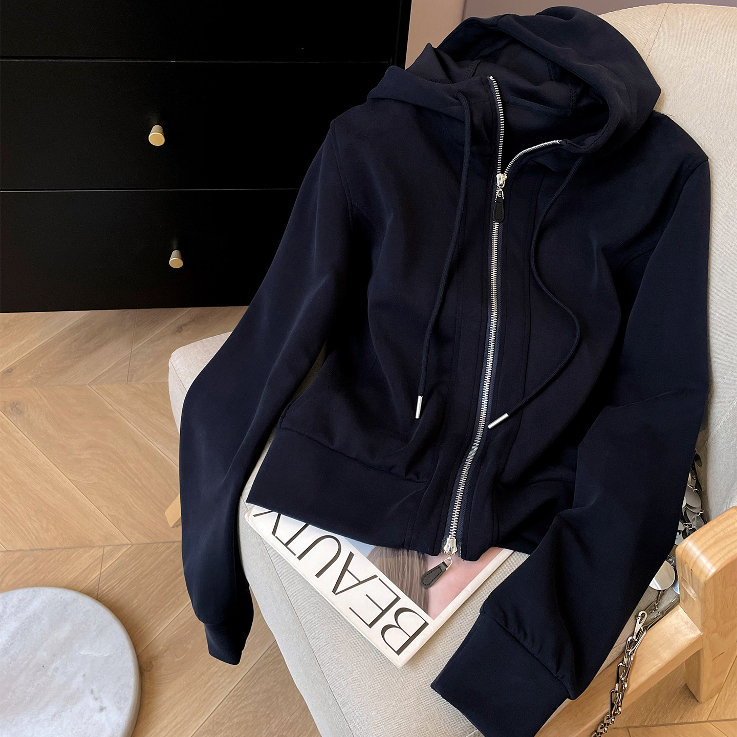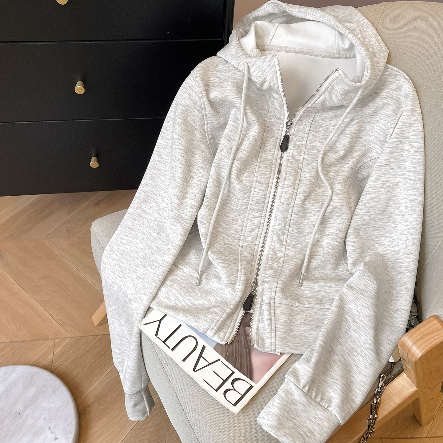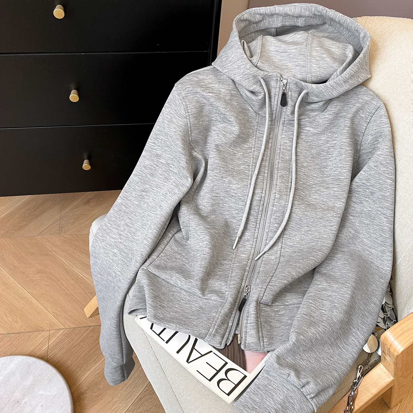 小C家 天丝连帽卫衣女款2026新款春季宽松休闲运动双拉链短款外套