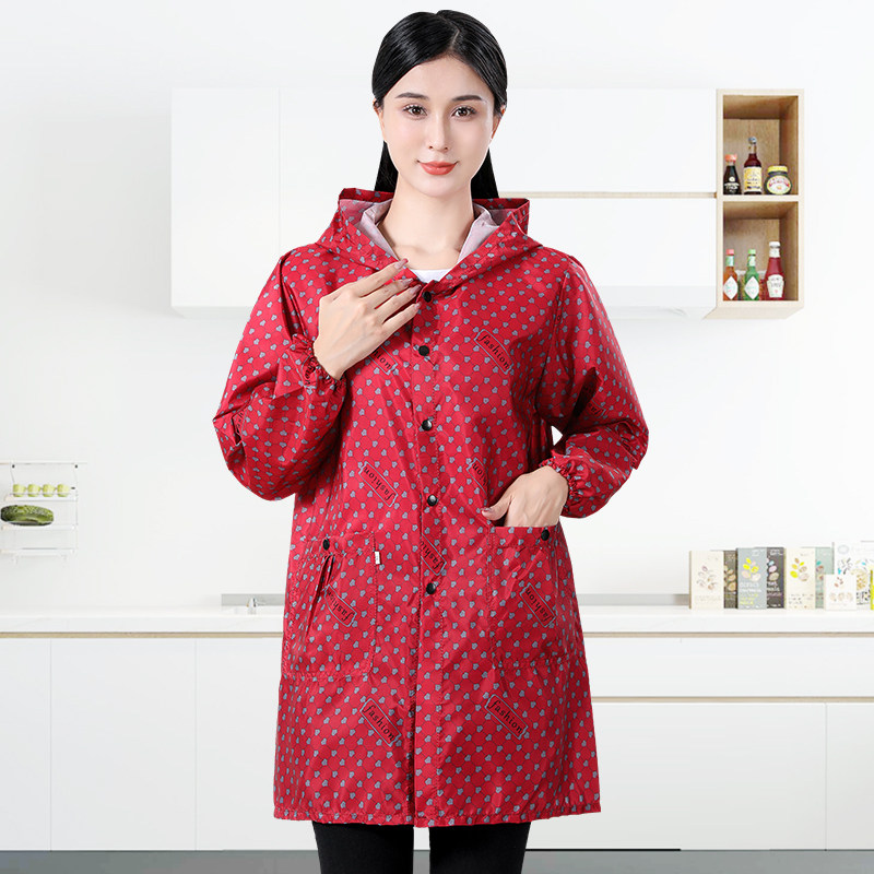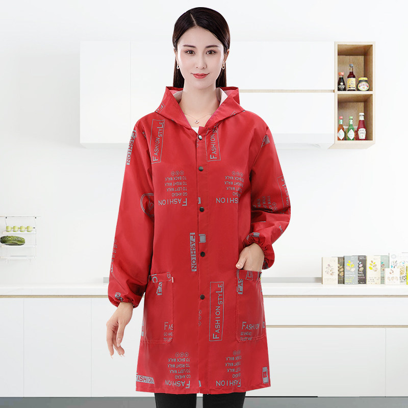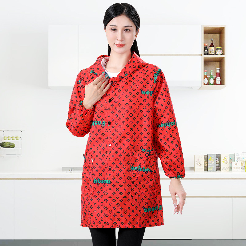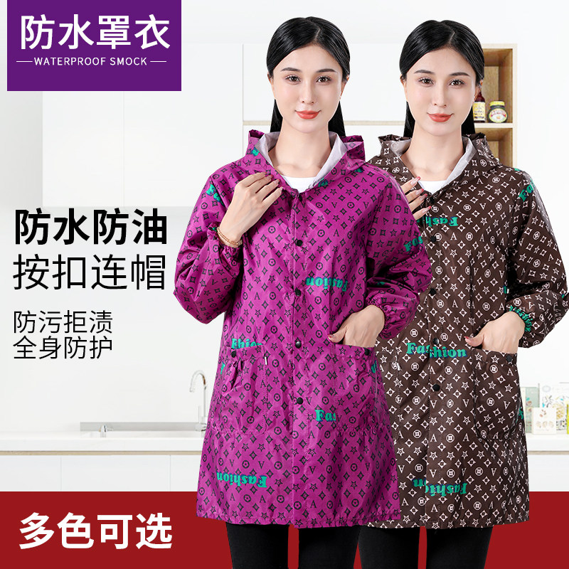 按扣薄款成人罩衣女士长袖围裙工作服防尘防水厨房做饭家用时尚外