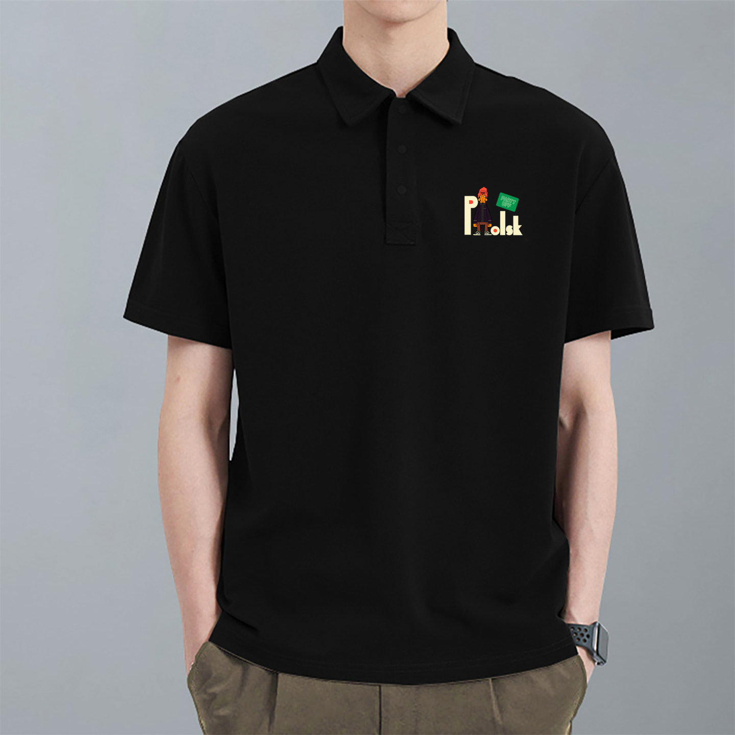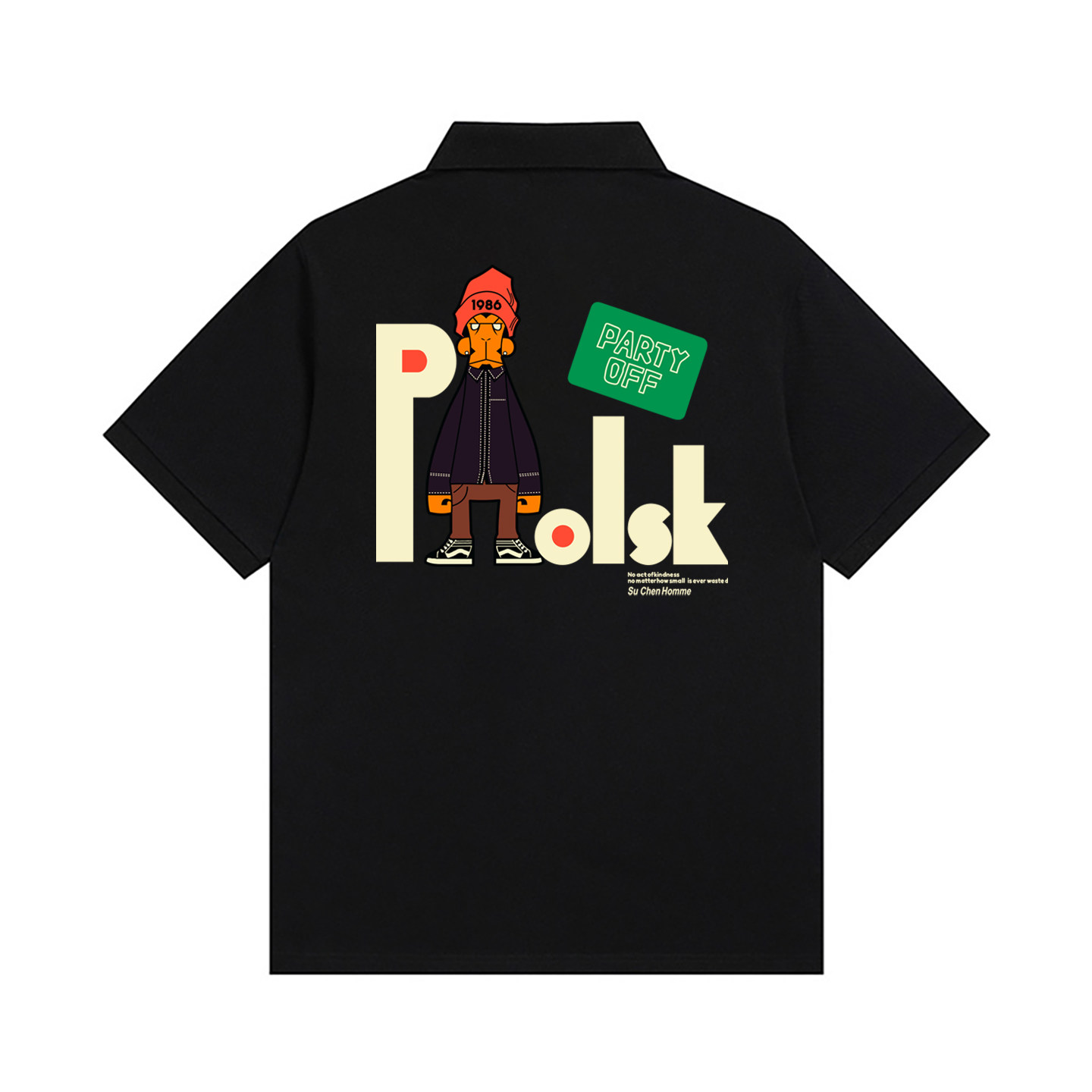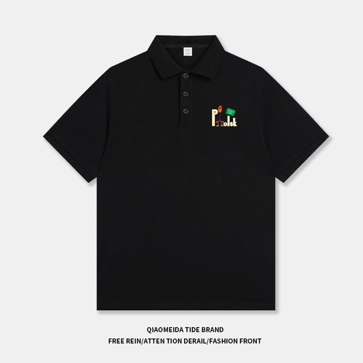 港风潮流休闲复古设计款涂鸦字母卡通印花青少年翻领短袖Polo衫男