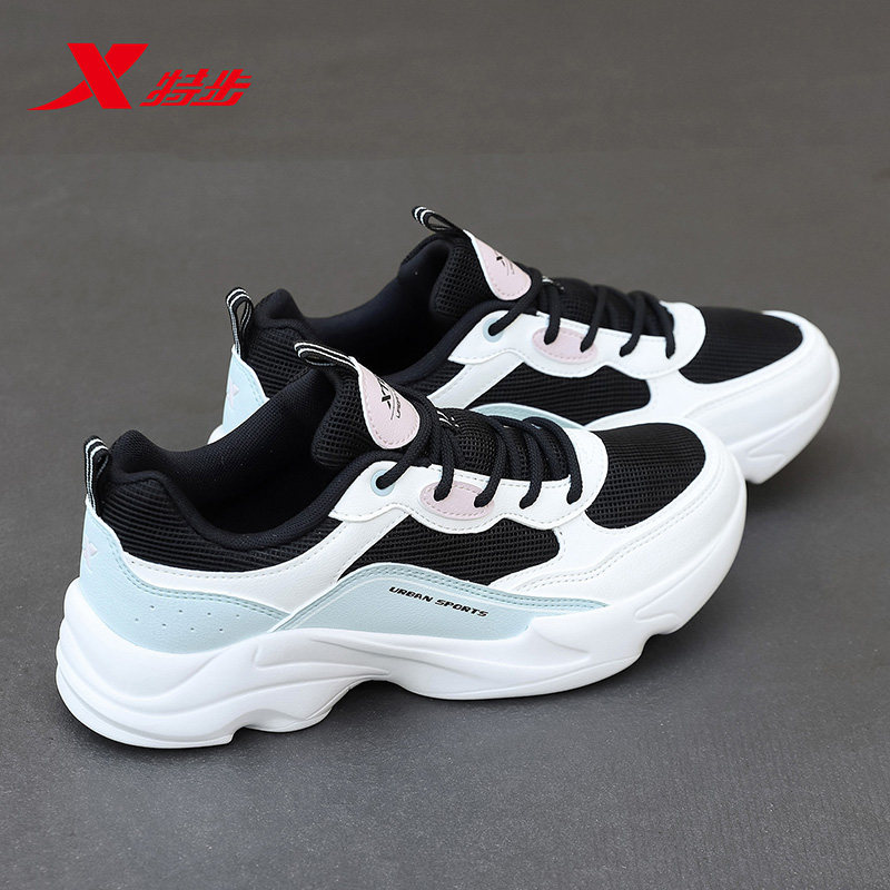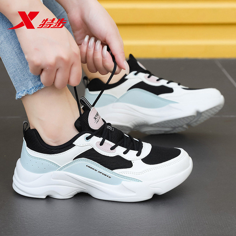 特步女鞋休闲鞋2026新款春季轻便透气复古老爹鞋厚底网面运动鞋女