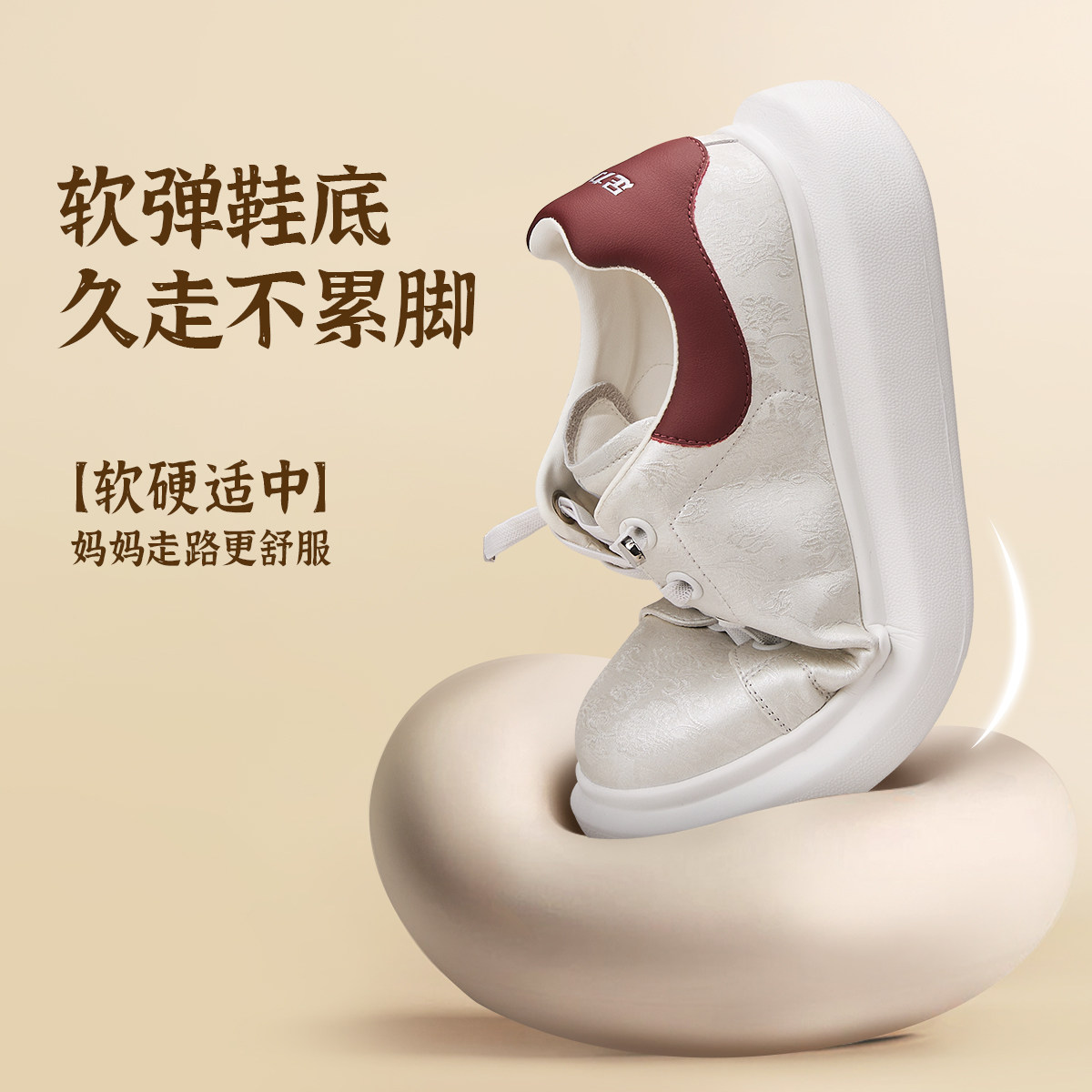 足力健官方旗舰店妈妈小白鞋春夏鞋子女款百搭不累脚休闲运动板鞋