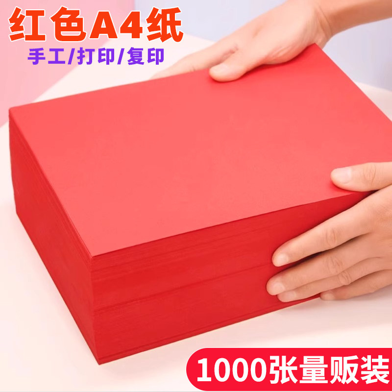 红色a4打印纸 大红色a4纸加厚80g彩色复印纸A5红色纸70g批发办公用品彩纸红色卡纸230克A3红纸整箱打印机专用
