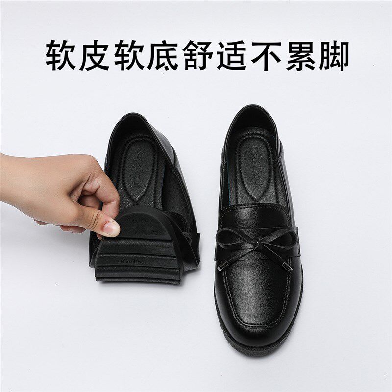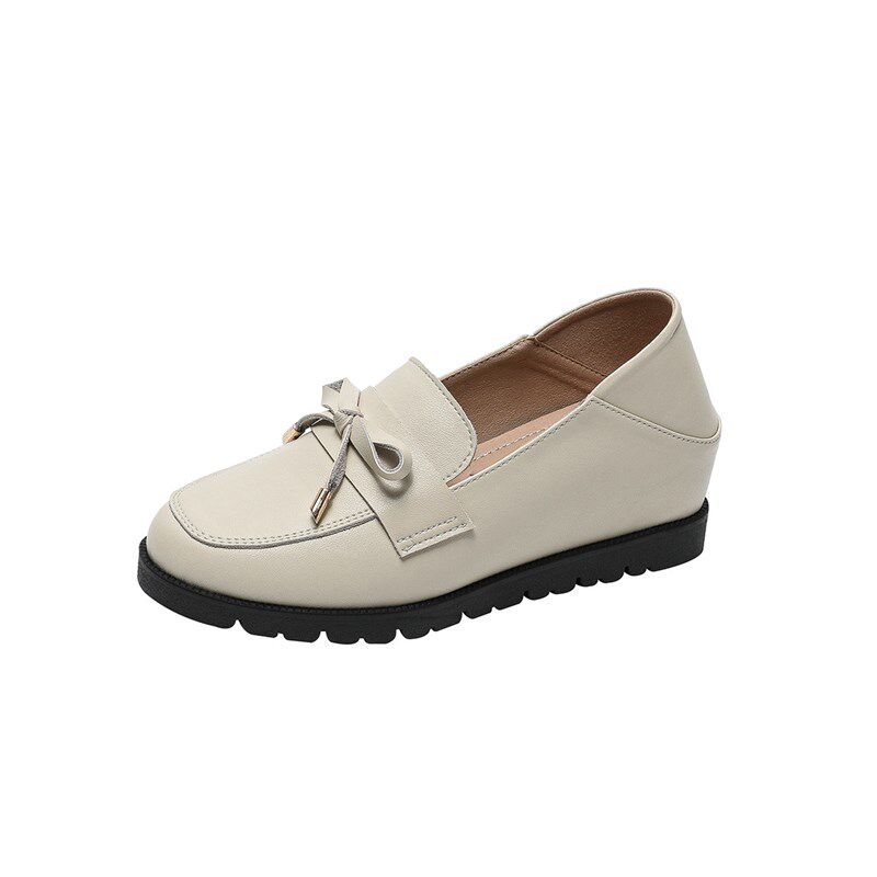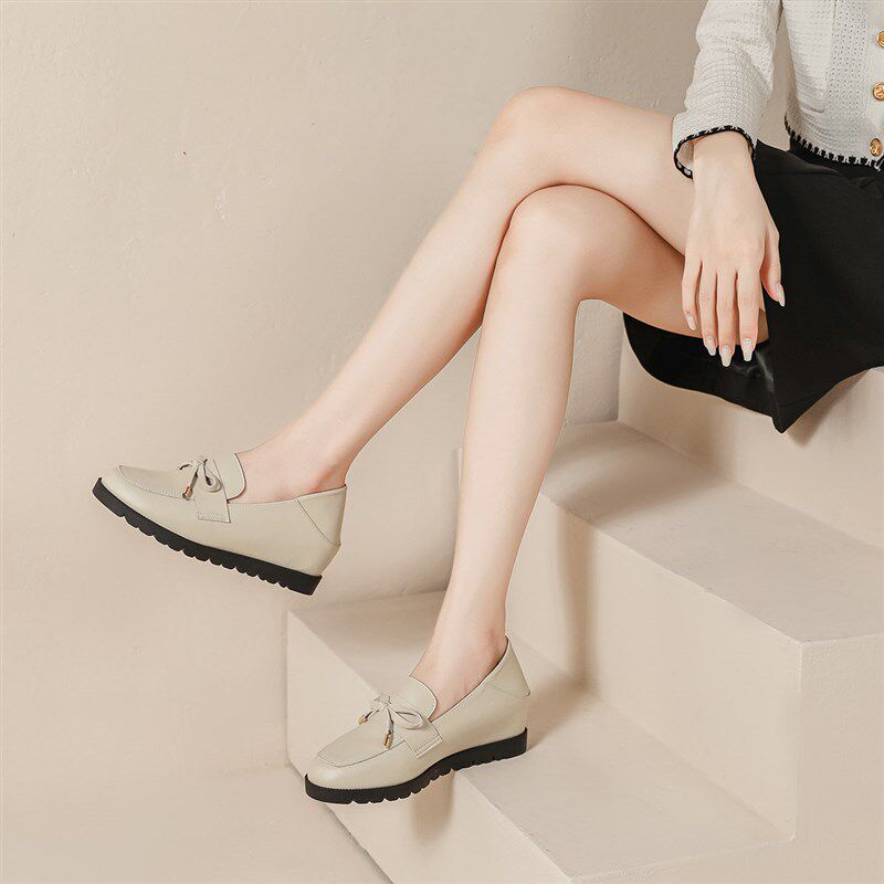 新品真皮乐福鞋女2026新款厚底小个子内增高蝴蝶结通Y勤粗跟圆头