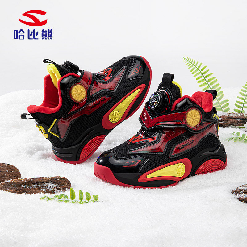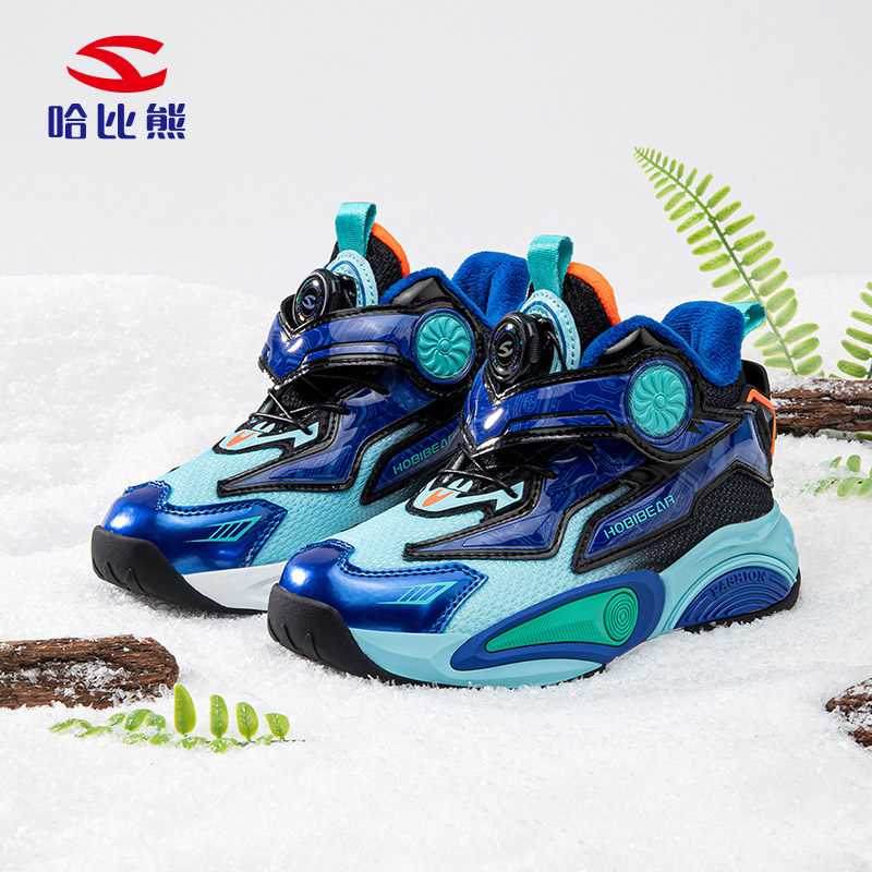 哈比熊男童篮球鞋2025冬季加绒保暖棉鞋中大童实战训练舒适耐磨潮
