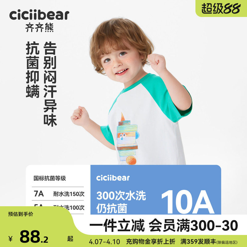 311线报网描述:齐齐熊宝宝夏款短袖t恤 10A抗菌凉感