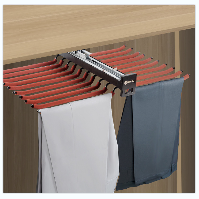 裤架伸缩衣柜家用内置滑轨抽拉式双排侧装防滑拉篮多功能裤抽架