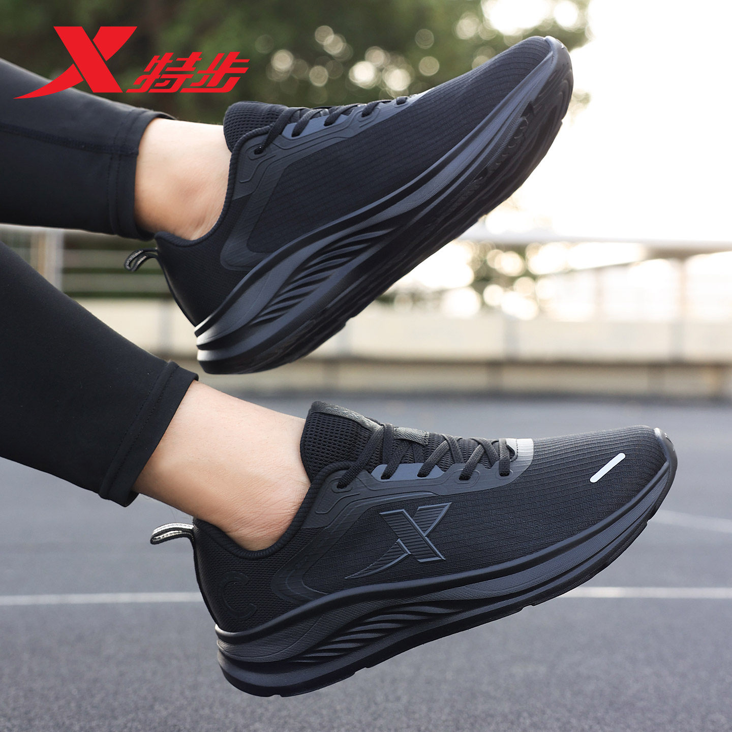 特步男鞋夏季2026新款网面跑步鞋轻便软底休闲鞋透气黑色运动鞋男