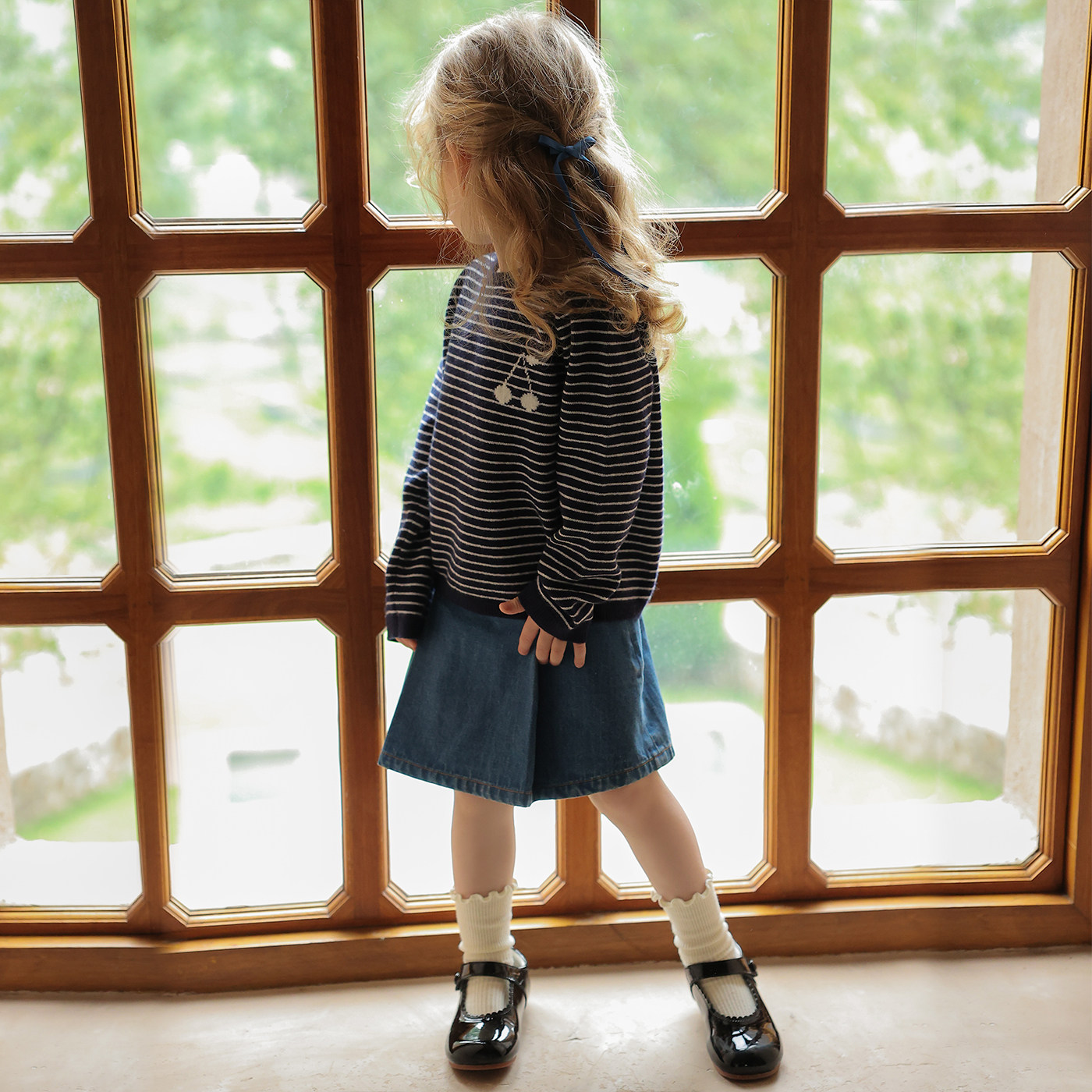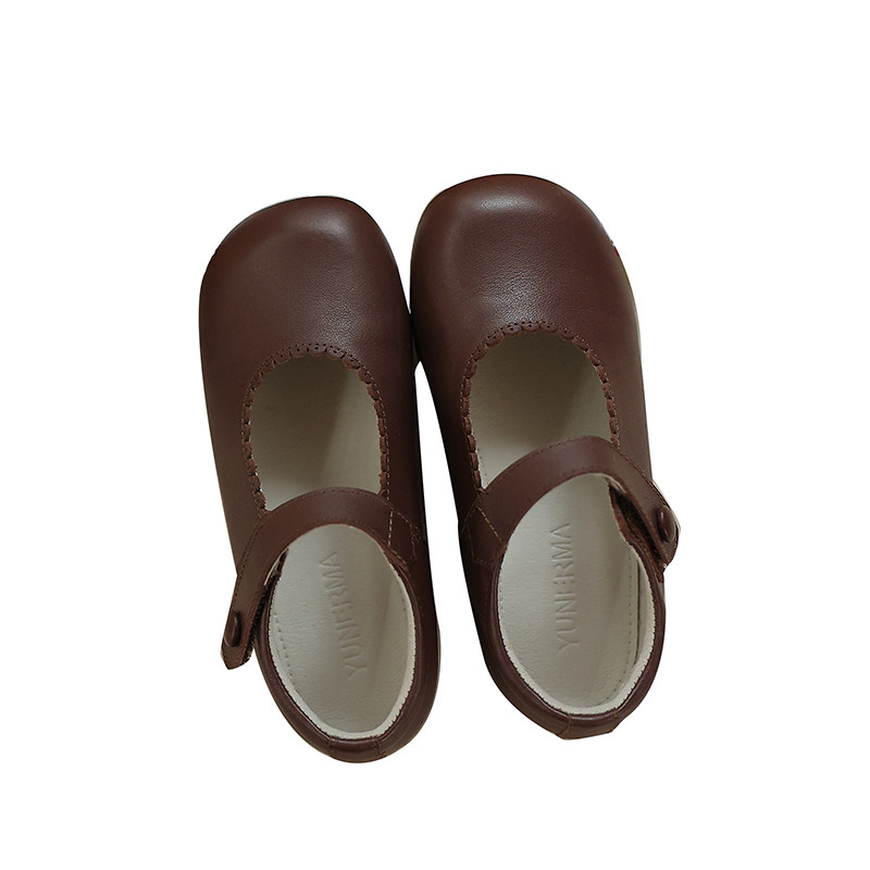 允儿妈女童春季新款纯牛皮魔术贴皮鞋宝宝幼儿园复古花边软底鞋子
