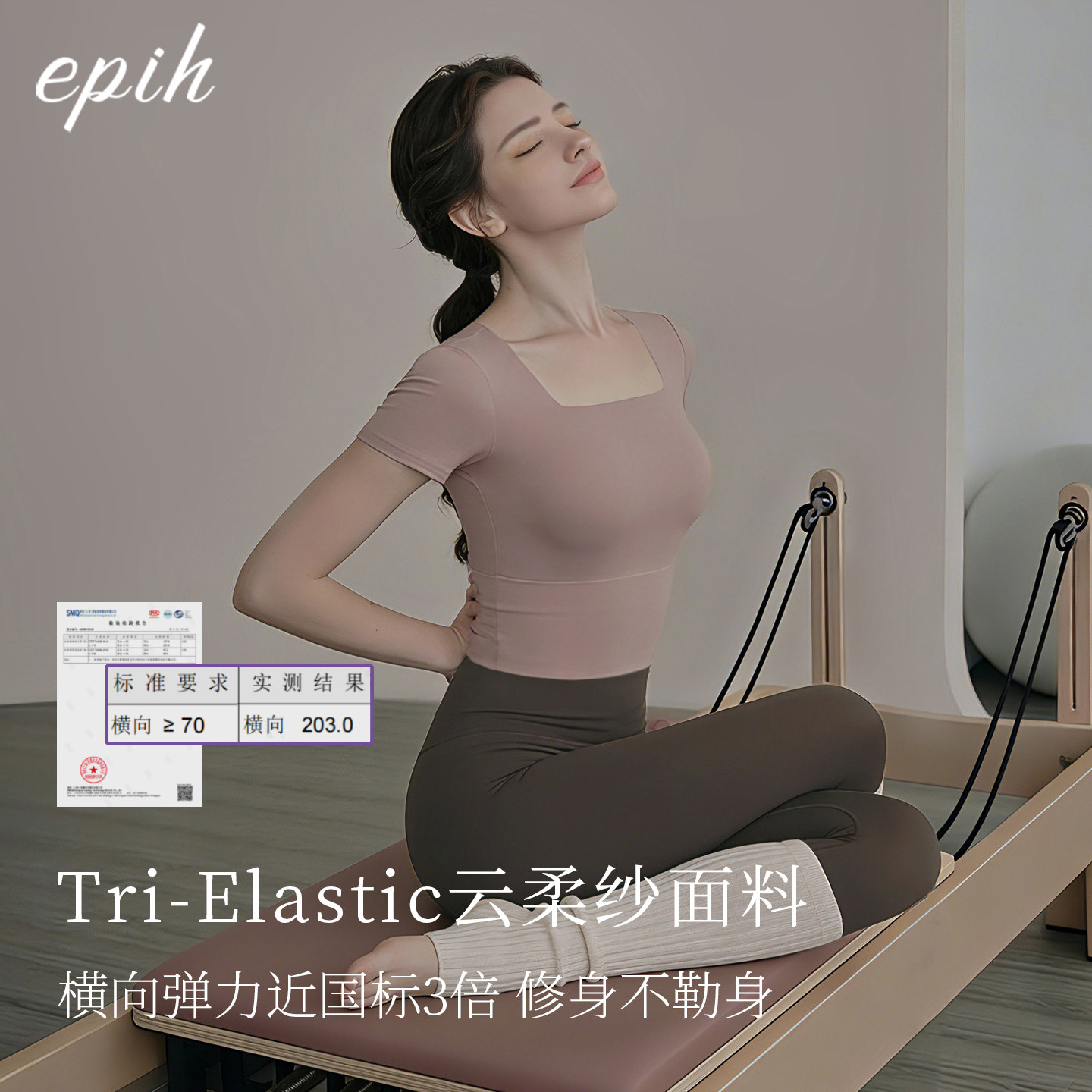 粉色普拉提瑜伽服套装女夏绝美健身上衣运动训练短袖芭蕾风带胸垫