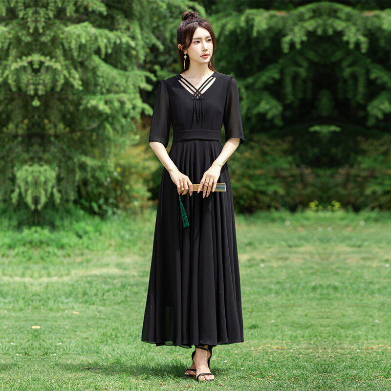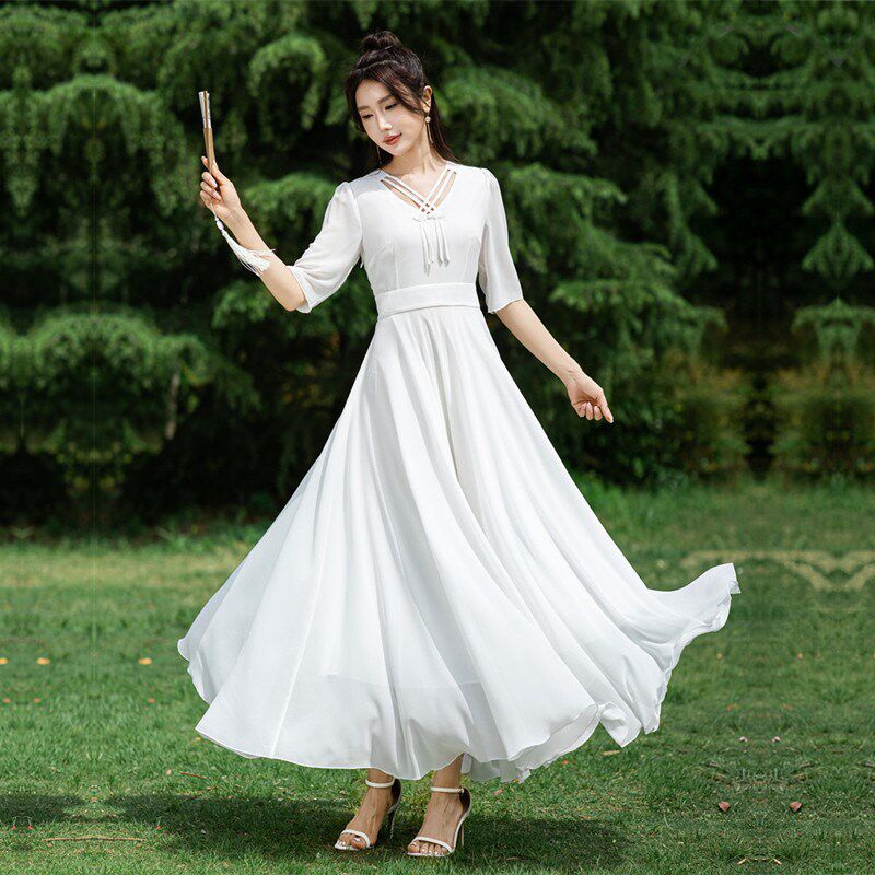 2024夏季新款连衣裙雪纺显瘦海边度假沙滩裙长裙到脚踝大摆超长款