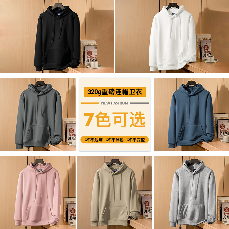 320g重磅纯色黑色卫衣男士连帽外套潮流帅气青少年加绒长袖带帽衫