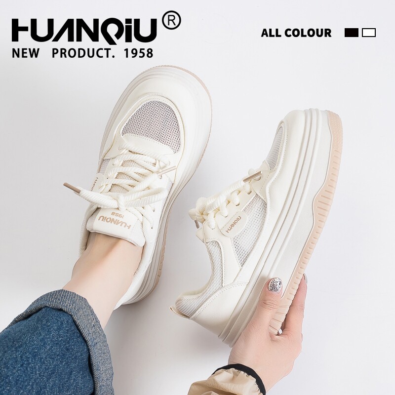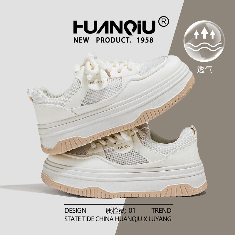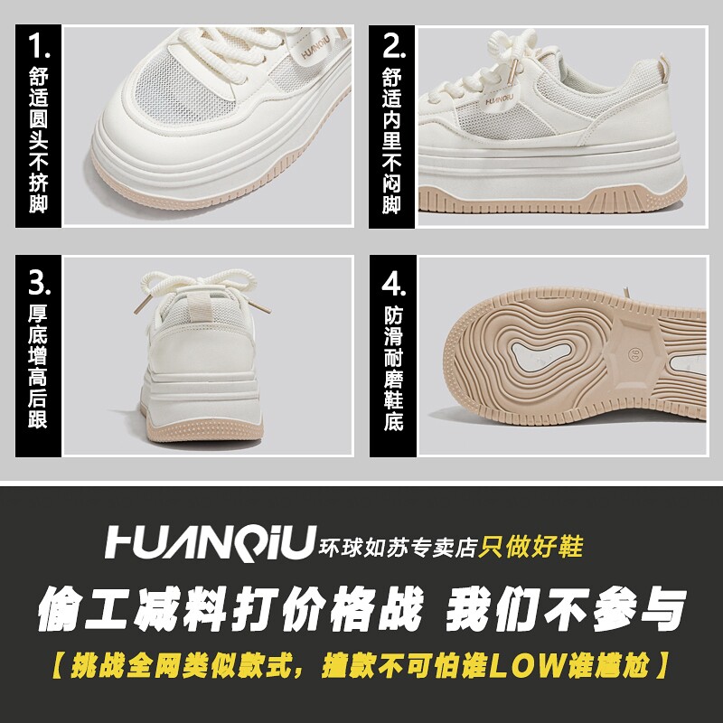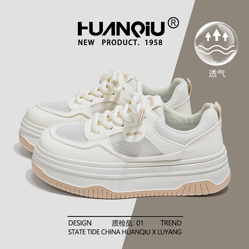 环球网面透气小白鞋女夏季2026新款百搭厚底配裙子学生休闲板鞋子