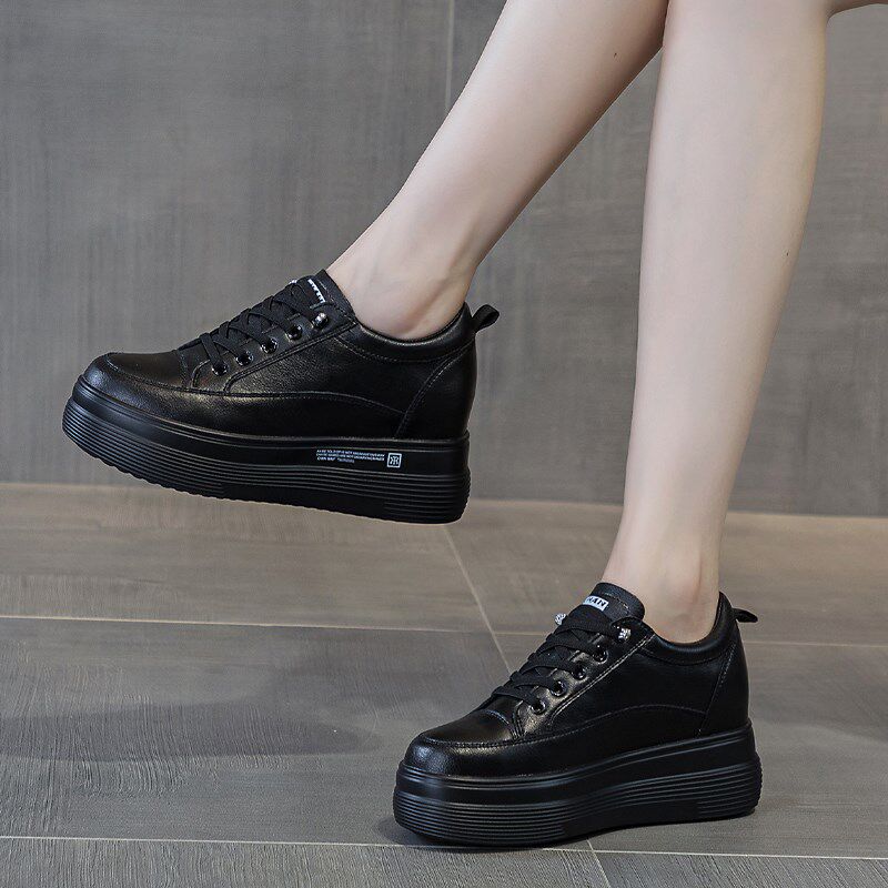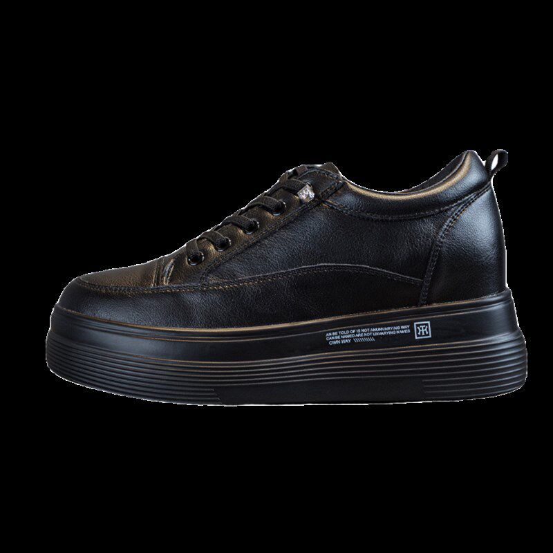 软底秀气内增高女鞋春秋黑色运动鞋女2025新款真皮单鞋女式休闲鞋