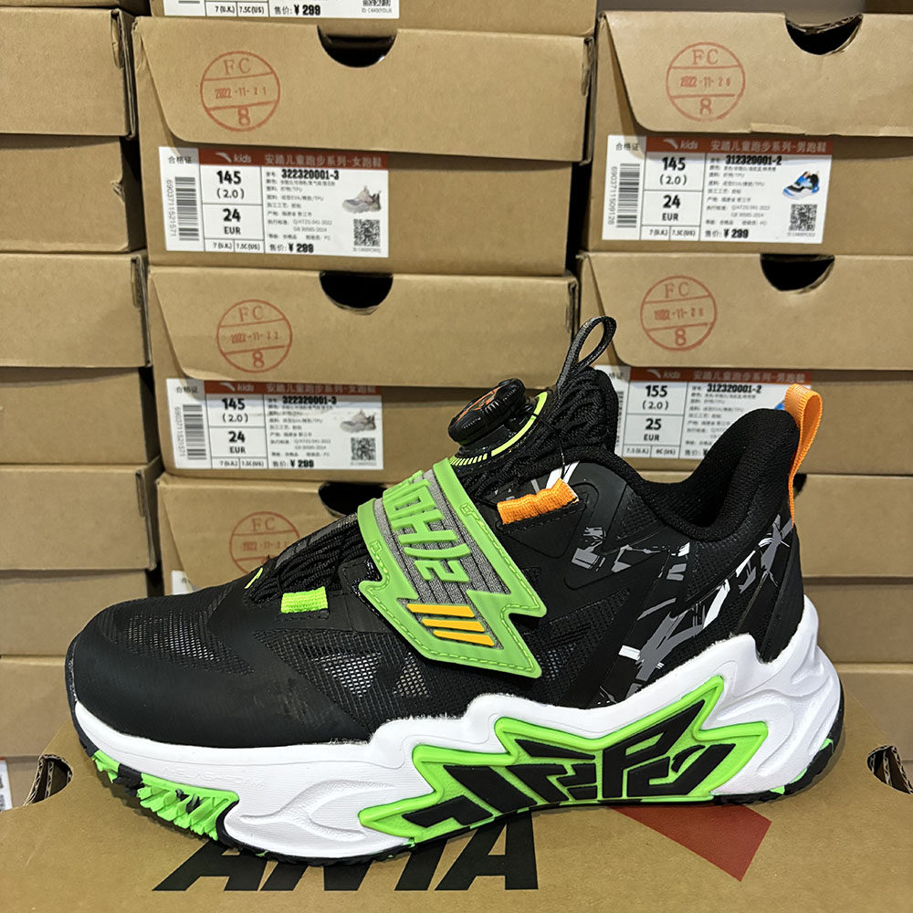 安踏儿童正品夏季旋转纽扣网面透气中大童男运动篮球鞋312321124