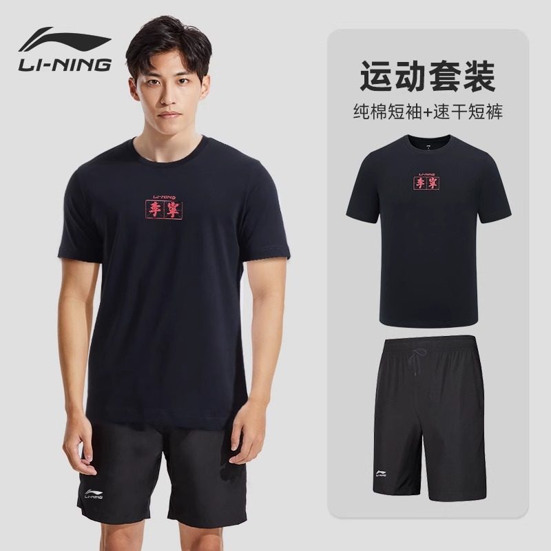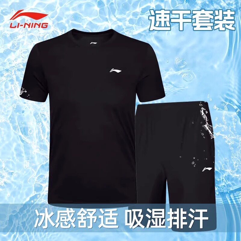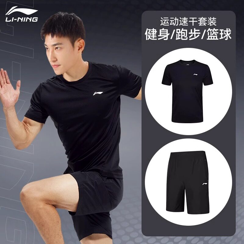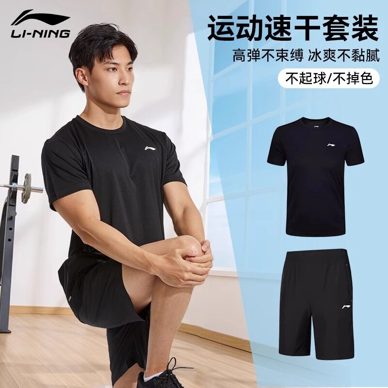李宁运动速干衣男套装夏季跑步田径训练服短袖短裤t恤冰丝篮球服