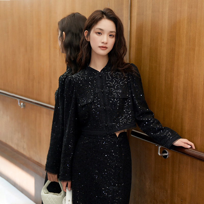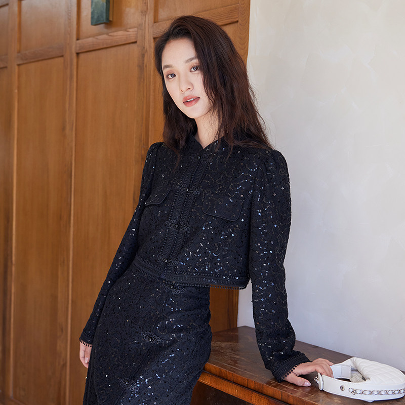 SOMSOM索玛春季新款专柜正品静奢轻量新中式珠片盘扣国风短外套女