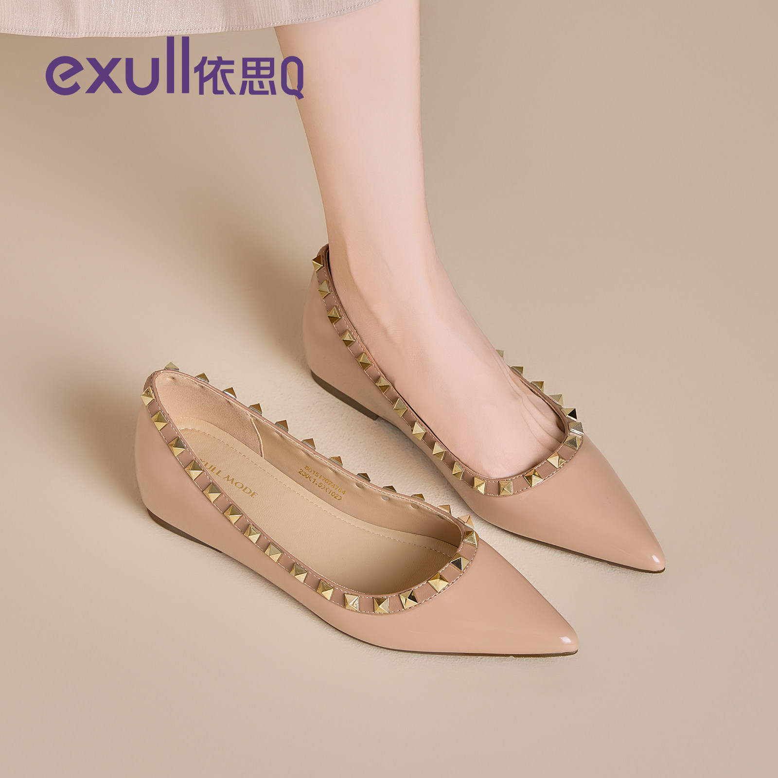 311线报网描述:依思q官方旗舰店正品裸色铆钉尖头单鞋