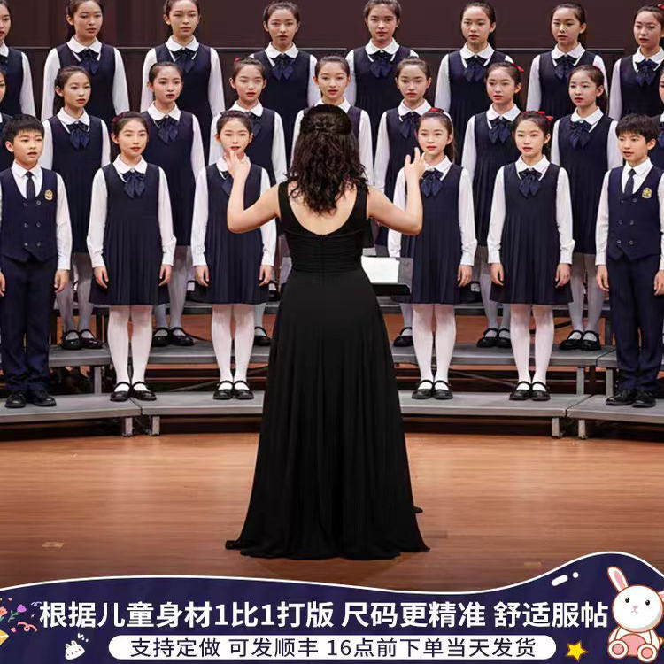 儿童合唱团演出服男女童学院风蓝色校服小学生爱国朗诵比赛服装