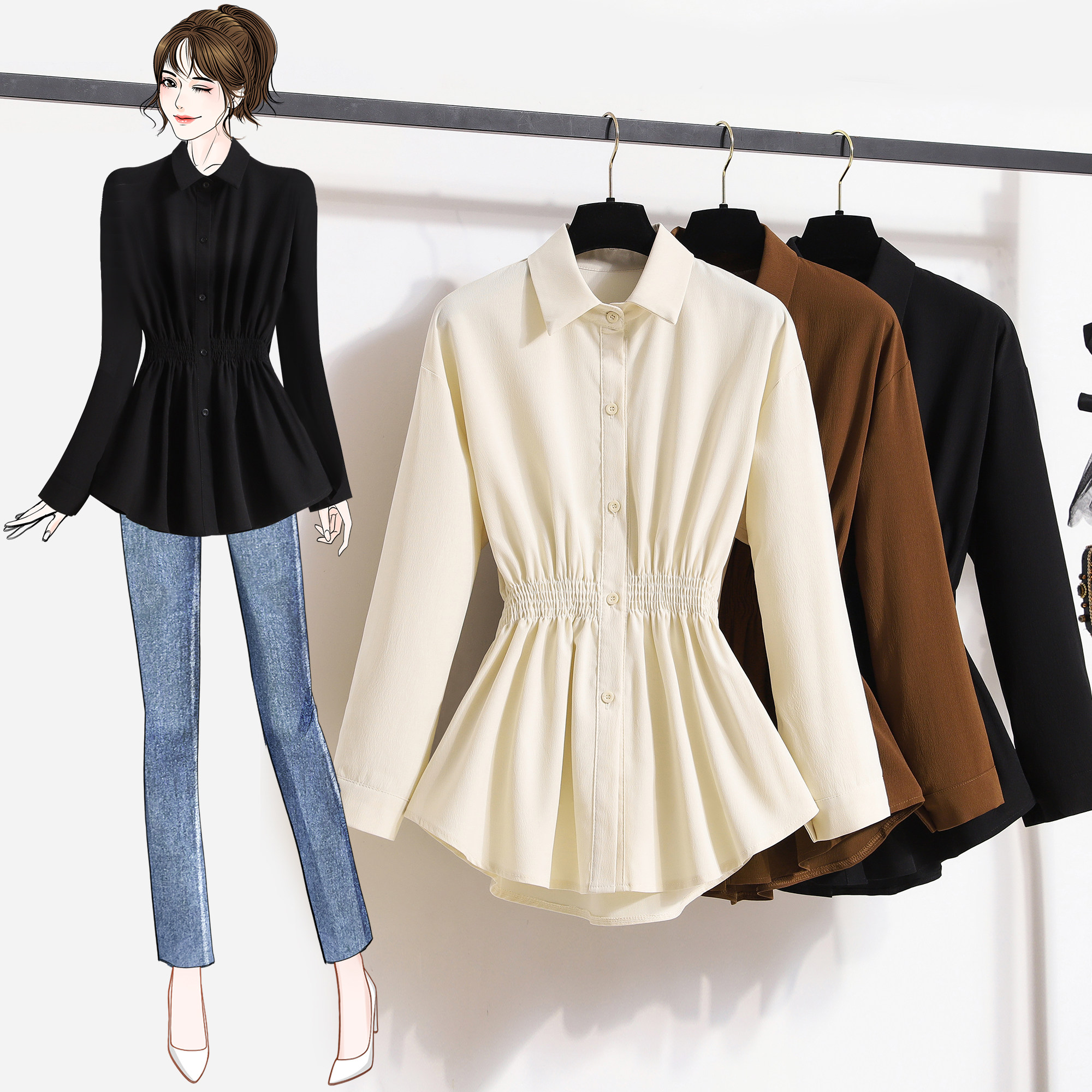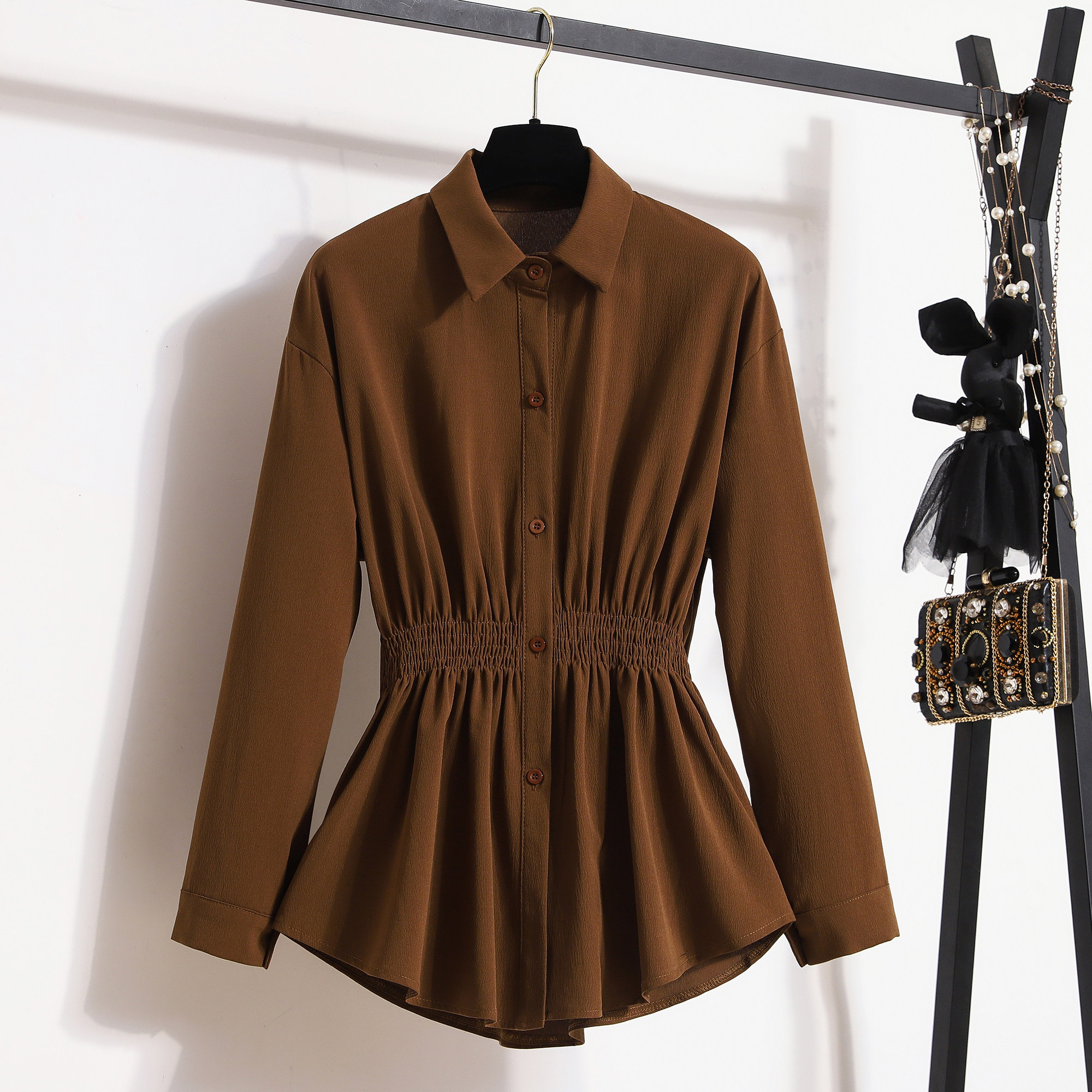 2026春夏季新款时尚百搭温柔风收腰衬衫女加大码收腰显瘦长袖上衣